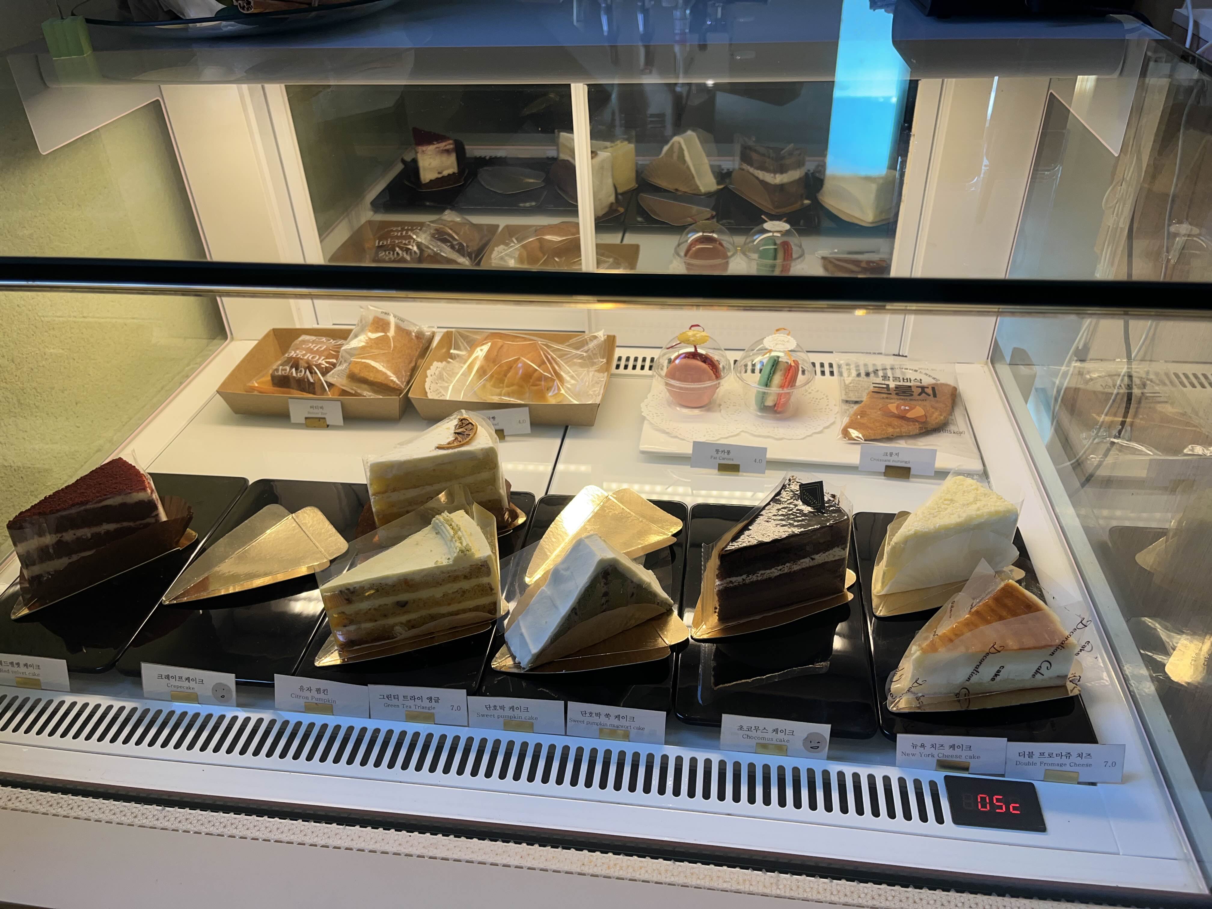 케이크도 종류가 다양해서 치즈 케이크랑 초코케이크를 먹을까 했지만, 크로플로 주문했다!