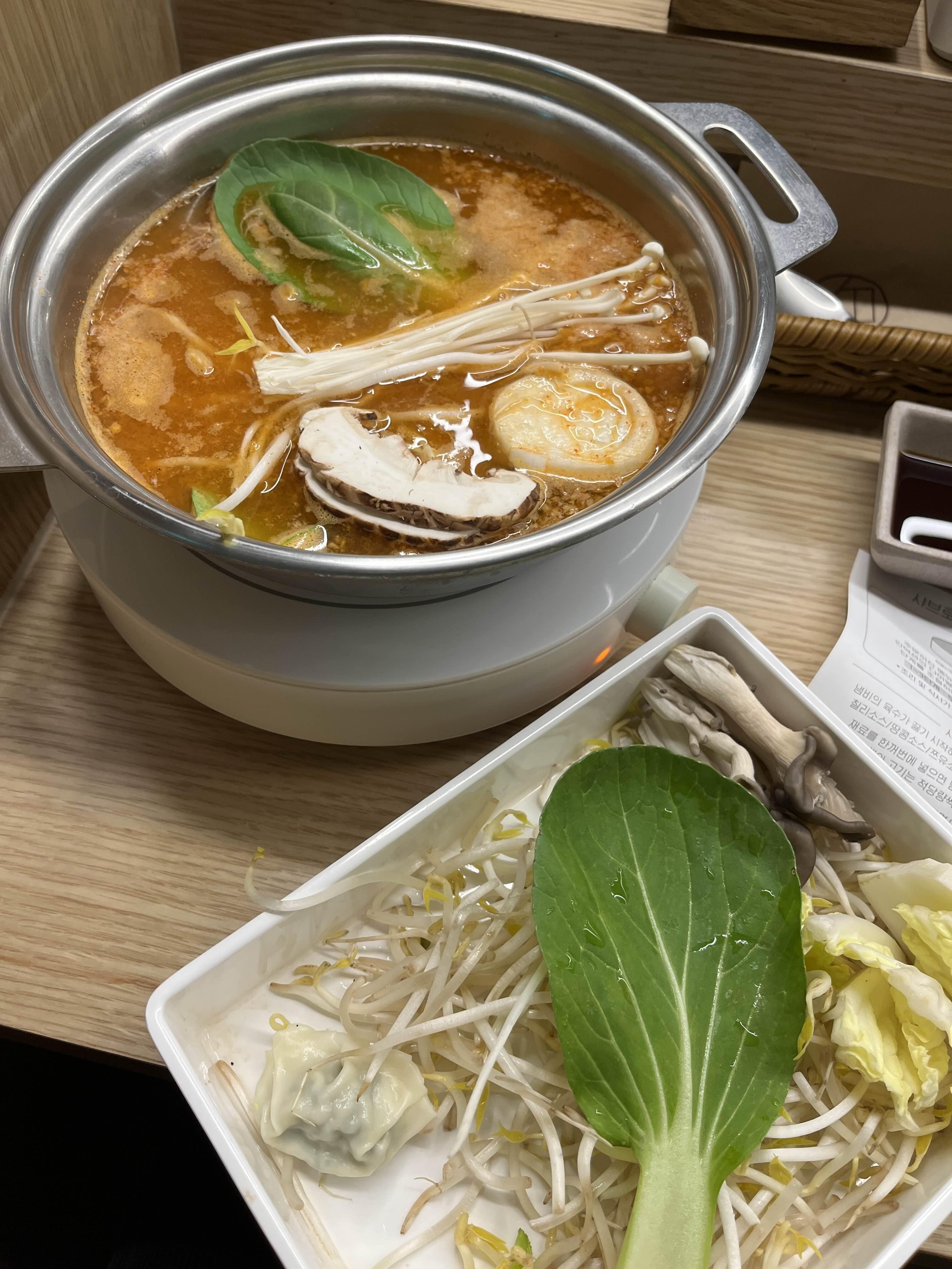 나는 얼큰한 맛과 + 칼국수 1개를 주문했다. 1인 샤브라 부담없는 양이고 나중에 추가주문도 된다.