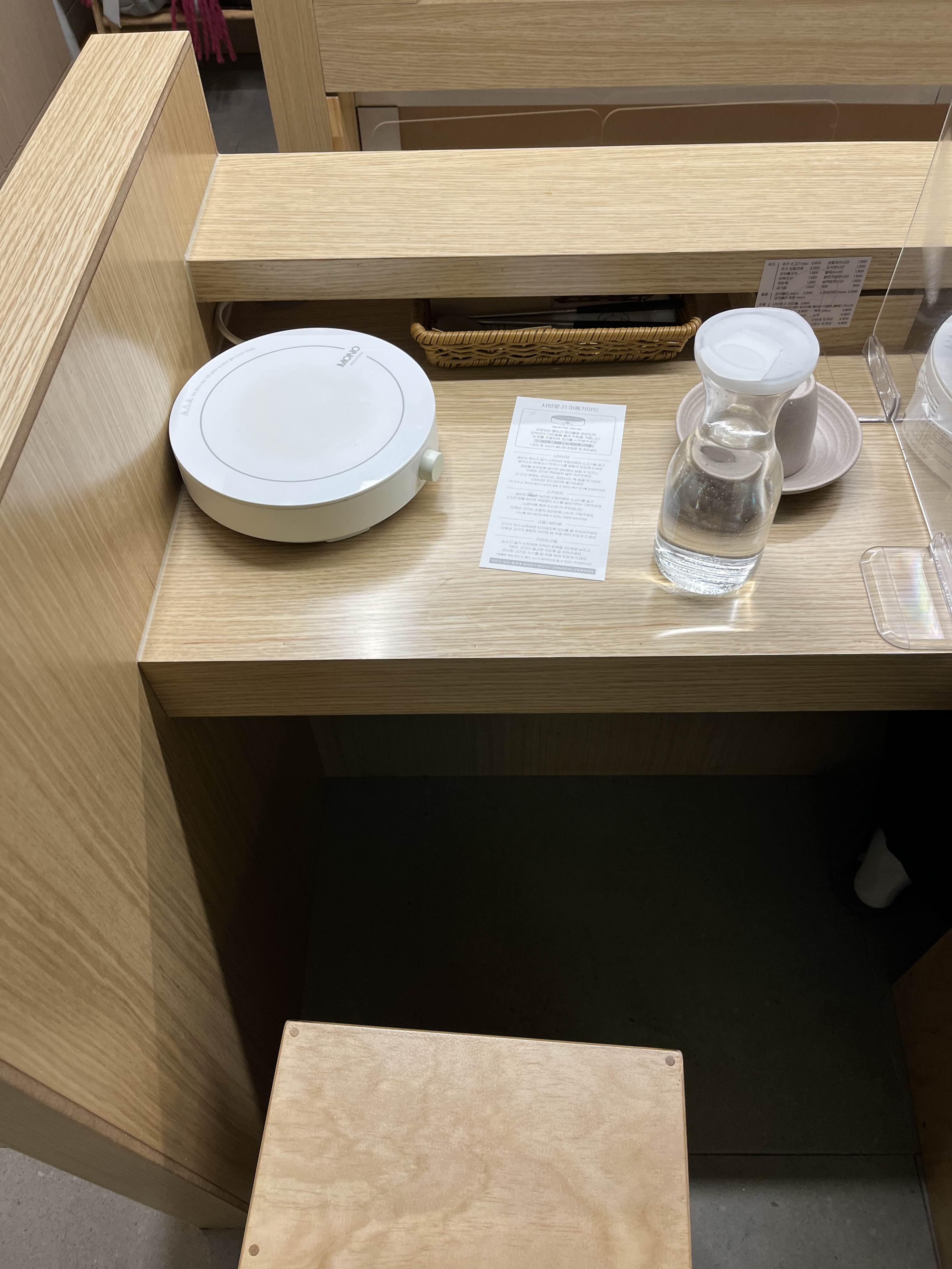 1명이라고 이야기하니, 바 자리로 안내받았고 옆에 가림막을 놓아주셔서 나름 프라이빗하게 앉아서 식사를 할 수 있었다.