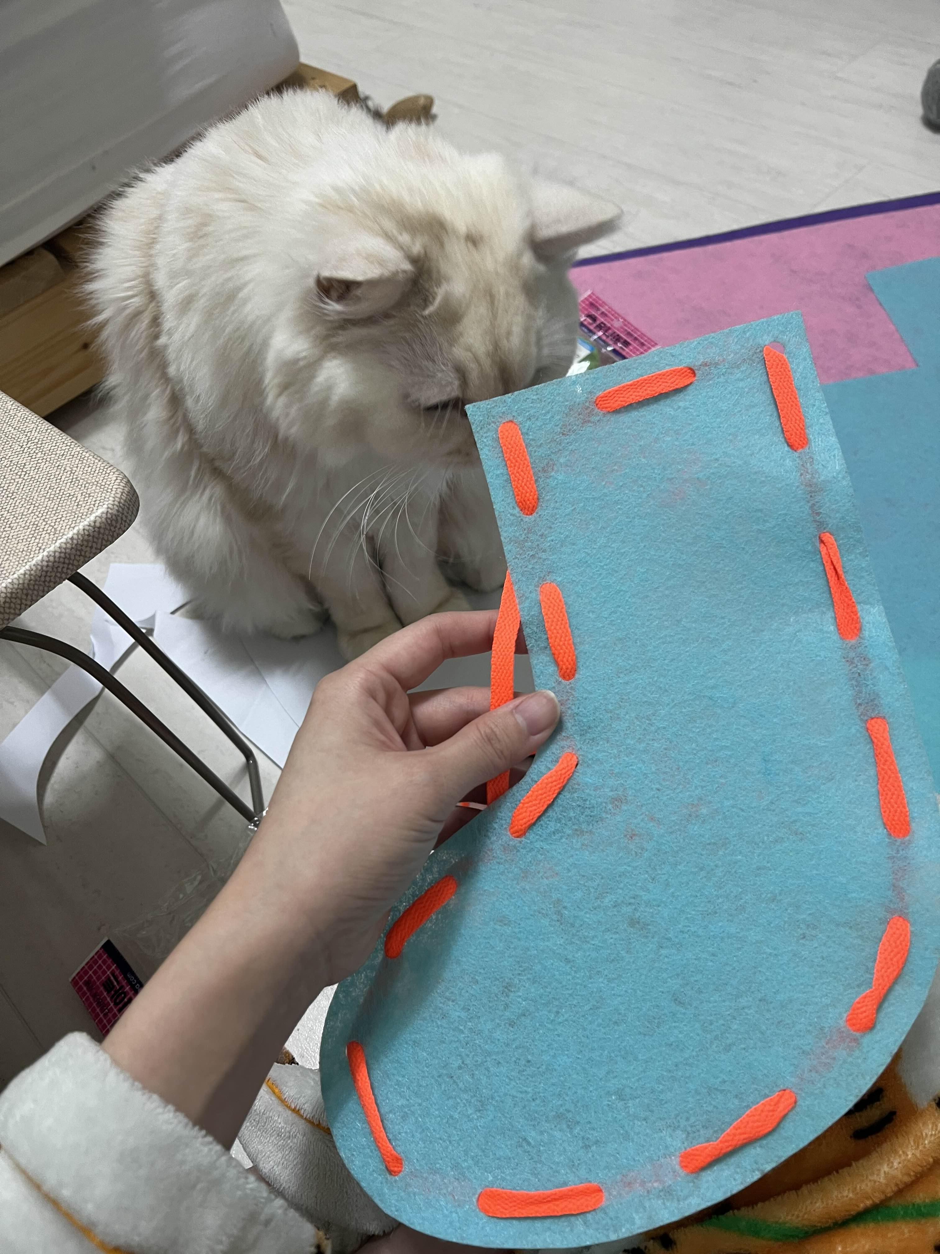 저는 망치는거 싫어서 부직포 위에 연필로 그린 후 가위로 잘랐습니다.