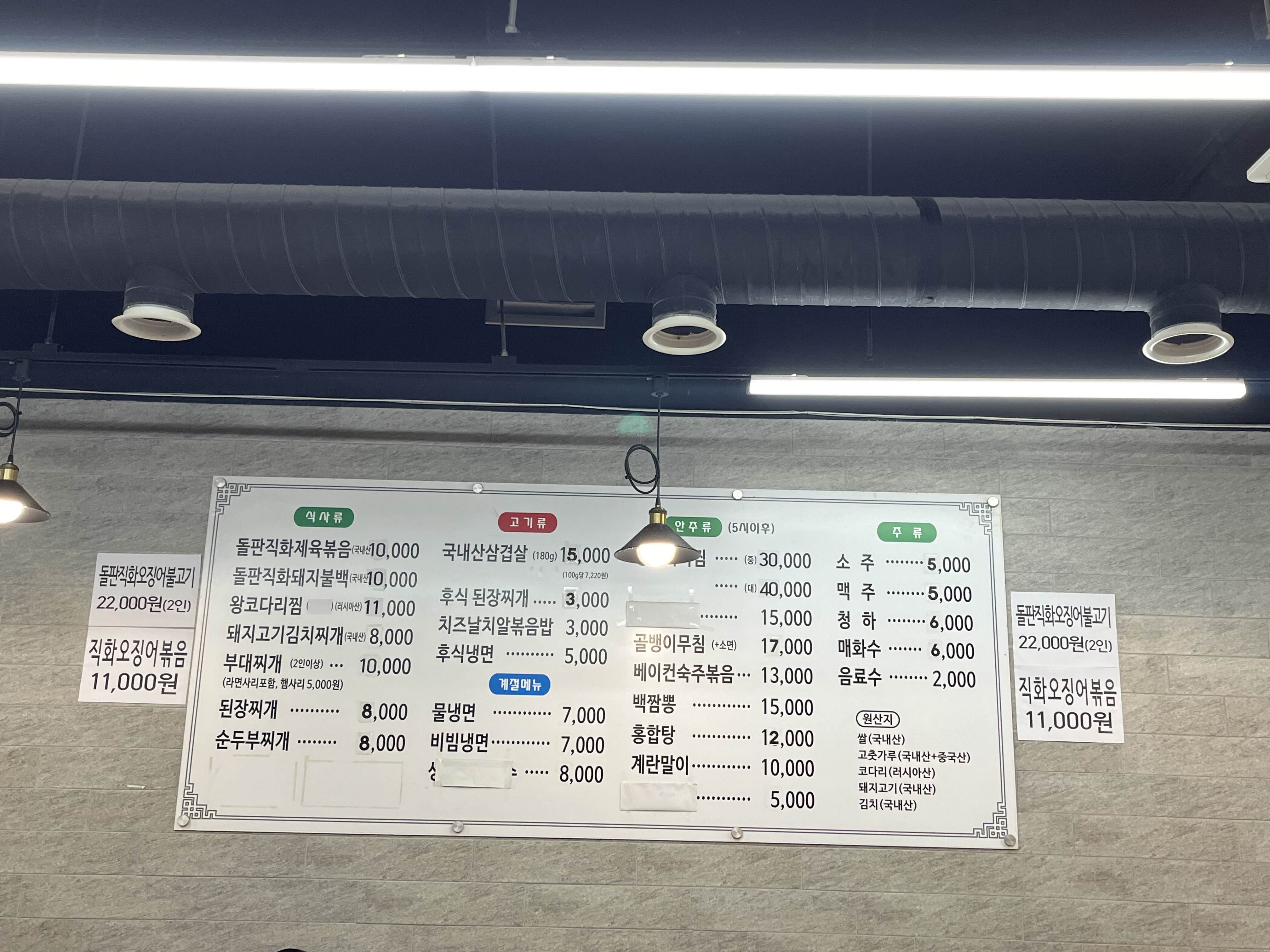 전주식당 메뉴입니다. 돌판직화제육볶음 1인분에 10,000원이고 여기의 장점은 2인이상 주문하지 않아도 된다는 점입니다...