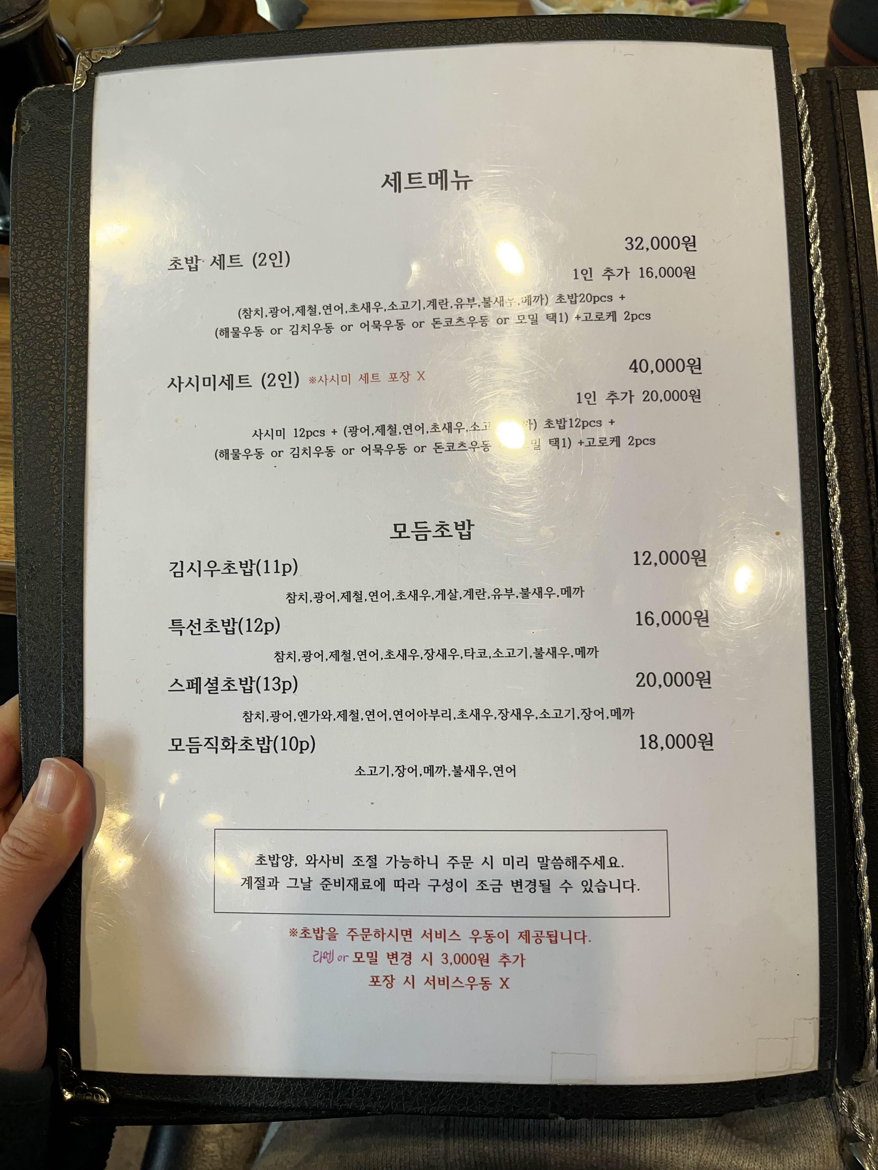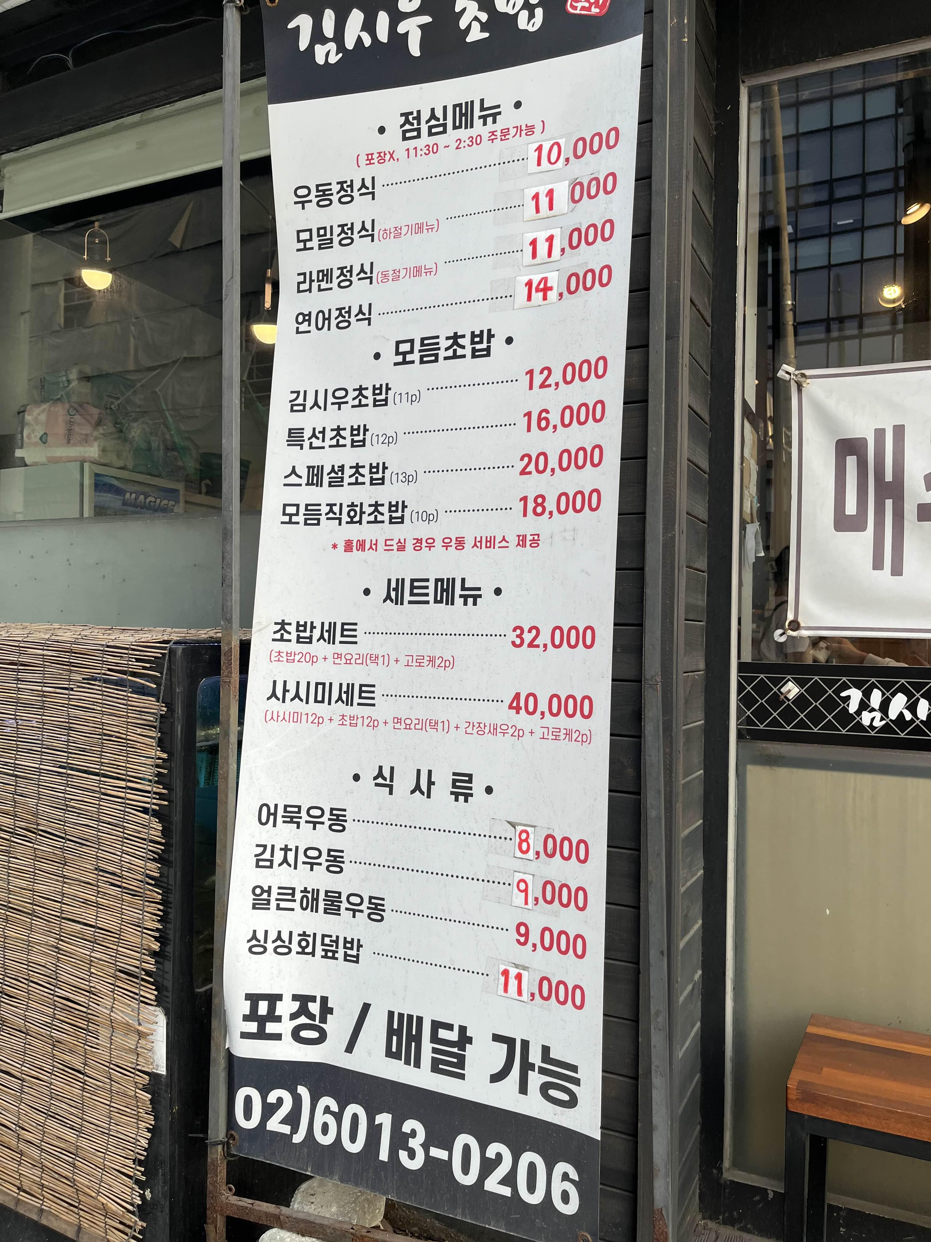 가장 유명한게 김시우 초밥 인거 같더라구요! 홀에서 먹으면 우동도 서비스입니다.
