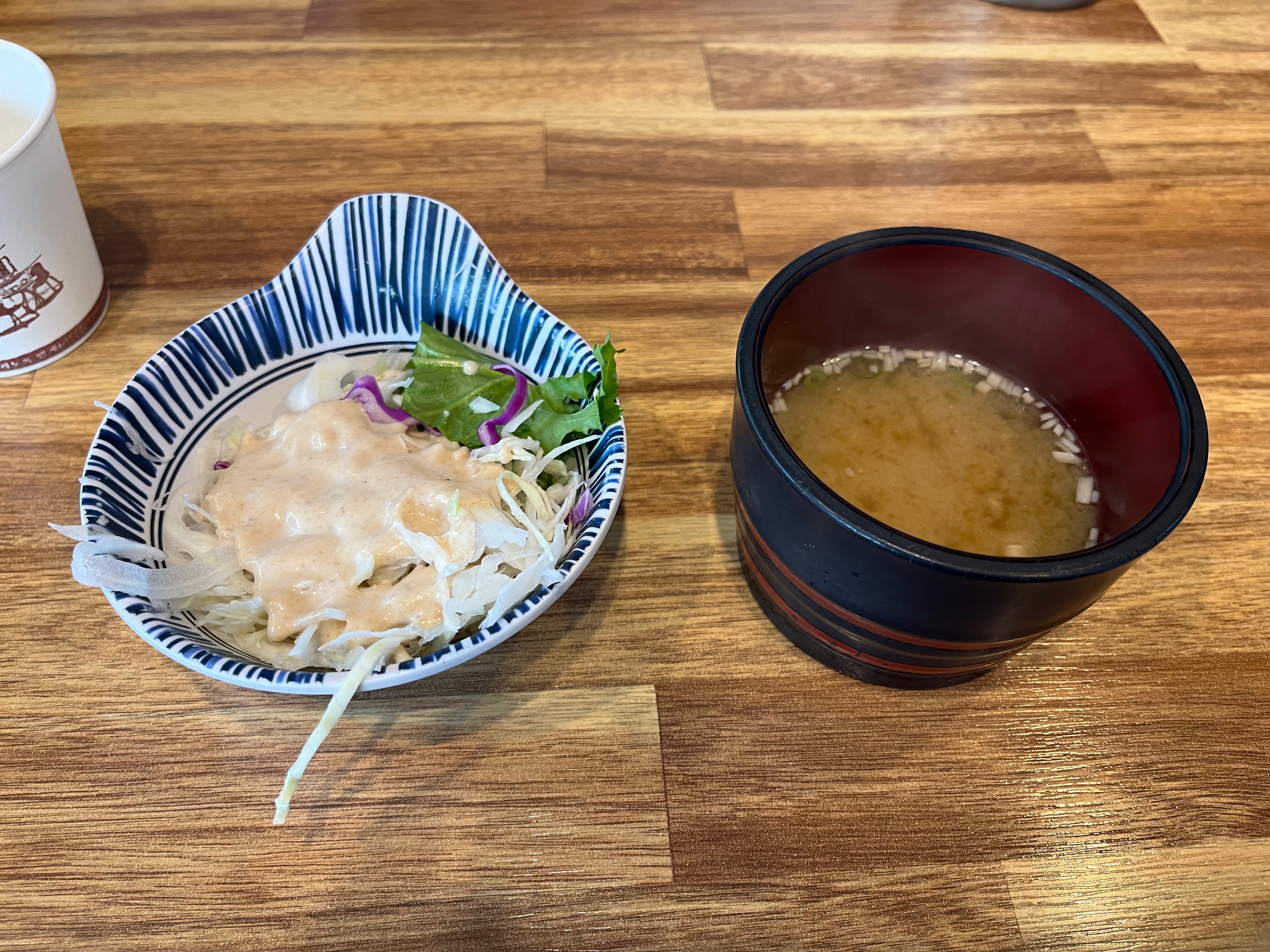 먼저 샐러드와 장국이 나왔고, 음식도 금방 나왔습니다. 그리고 내부에 주방이 오픈주방이라 내부까지 볼 수가 있는데