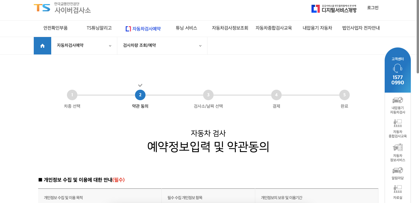 저는 인터넷으로 예약 후 방문했고, 집에 우편물 확인하면 바로 예약하시는걸 추천드립니다. 예약을 원하는 날짜, 시간에 하려면 미리 하시는것이 좋습니다. 검사 수수료도 발생합니다. 전화예약은 1577-0990입니다.