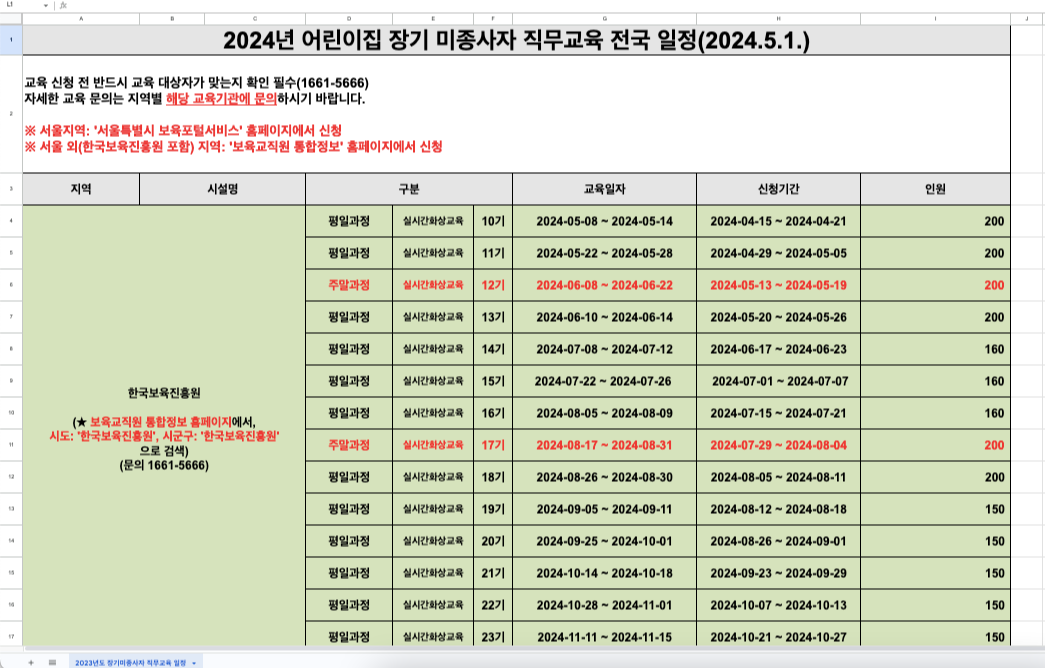 홈페이지 공지사항에 가면, 2024년 직무교육 전국 일정과 장소를 알 수 있습니다.