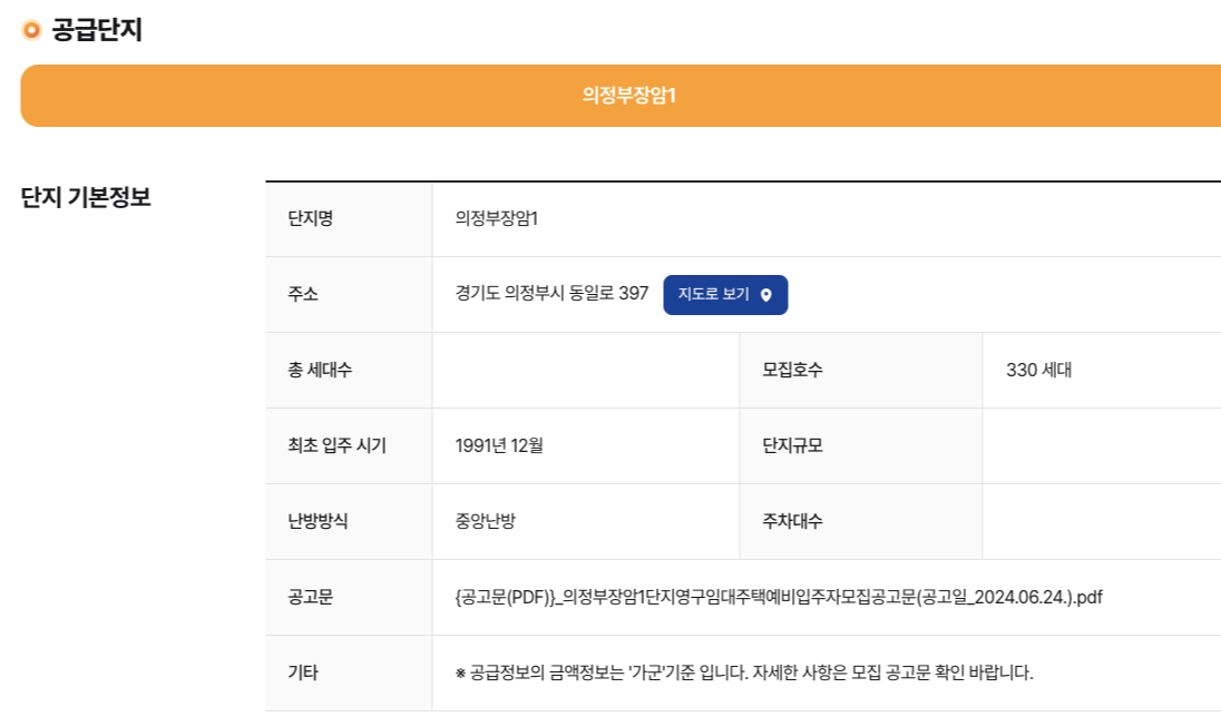 단지명은 의정부 장암1단지로 영구임대주택예비 입주자를 모집하고 있습니다.