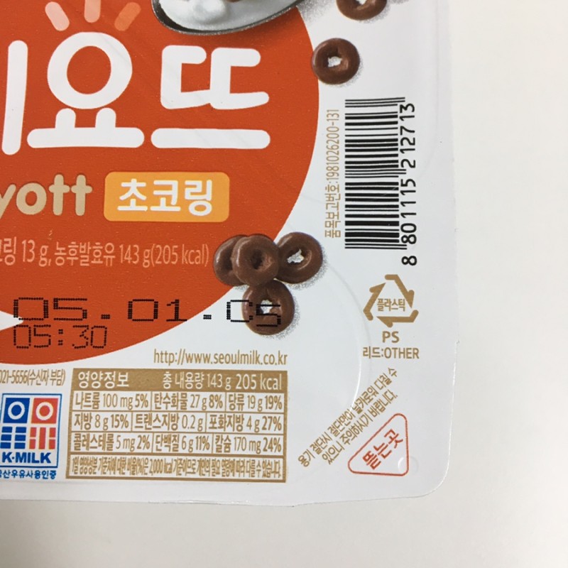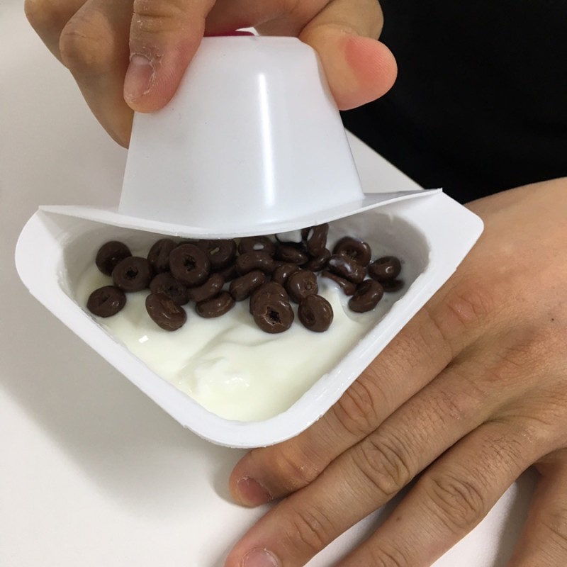 뒤집어보시면 이렇게 요플레 따로, 토핑 따로 플라스틱 칸에 나눠서 들어있어요.