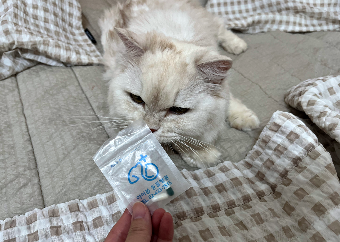 고양이 건강검진을 받기 전에는 몇 가지 준비사항이 있어요. 저도 미리 고양이 안정제를 처방받아서 고양이 진료 2시간 전에 먹인 후, 건강검진을 받을 수 있었어요.