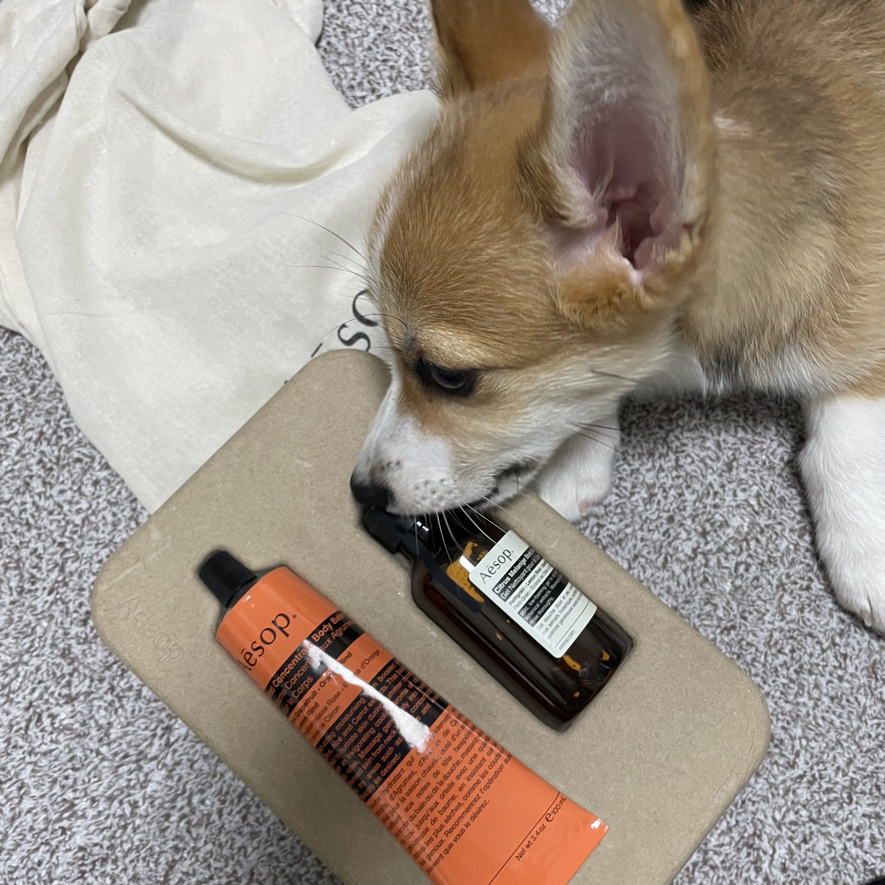 강아지도 좋아하는 선물. 저는 평소에 분홍색 향만 사용했는데, 주황색 써보니 이 향도 괜찮아요.