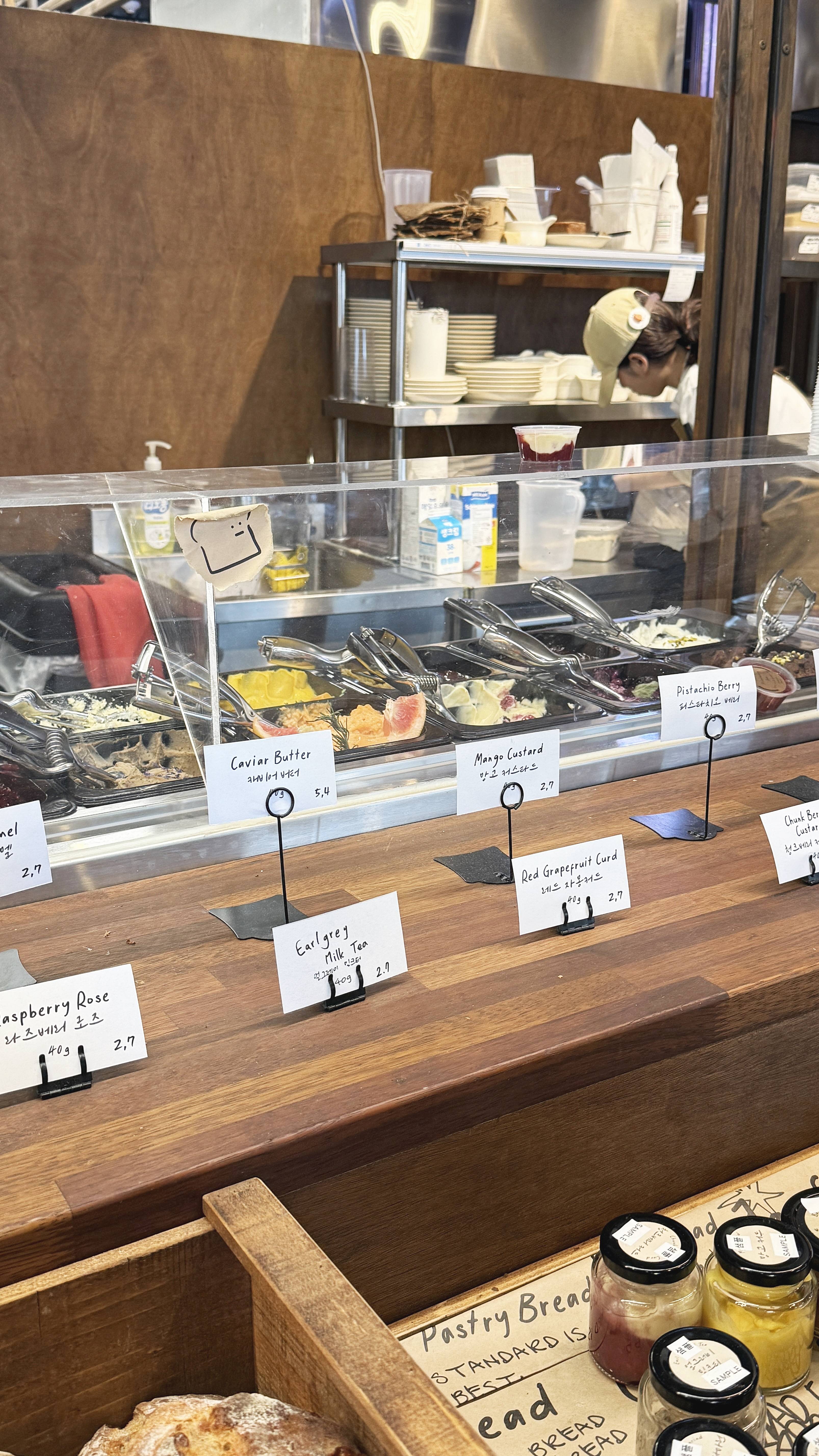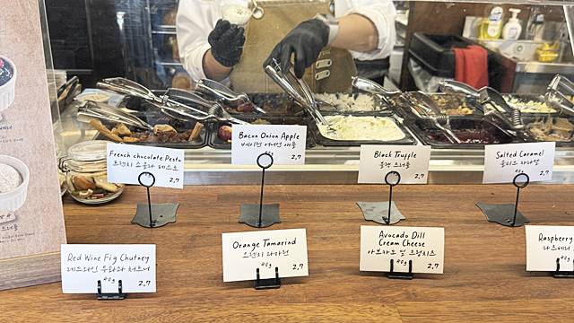 그리고 발라먹는 스프레드를 베라처럼 골라 담을 수가 있어요. 1스쿱당 2500원이고 작은 플라스틱 소스통에 담아줍니다.