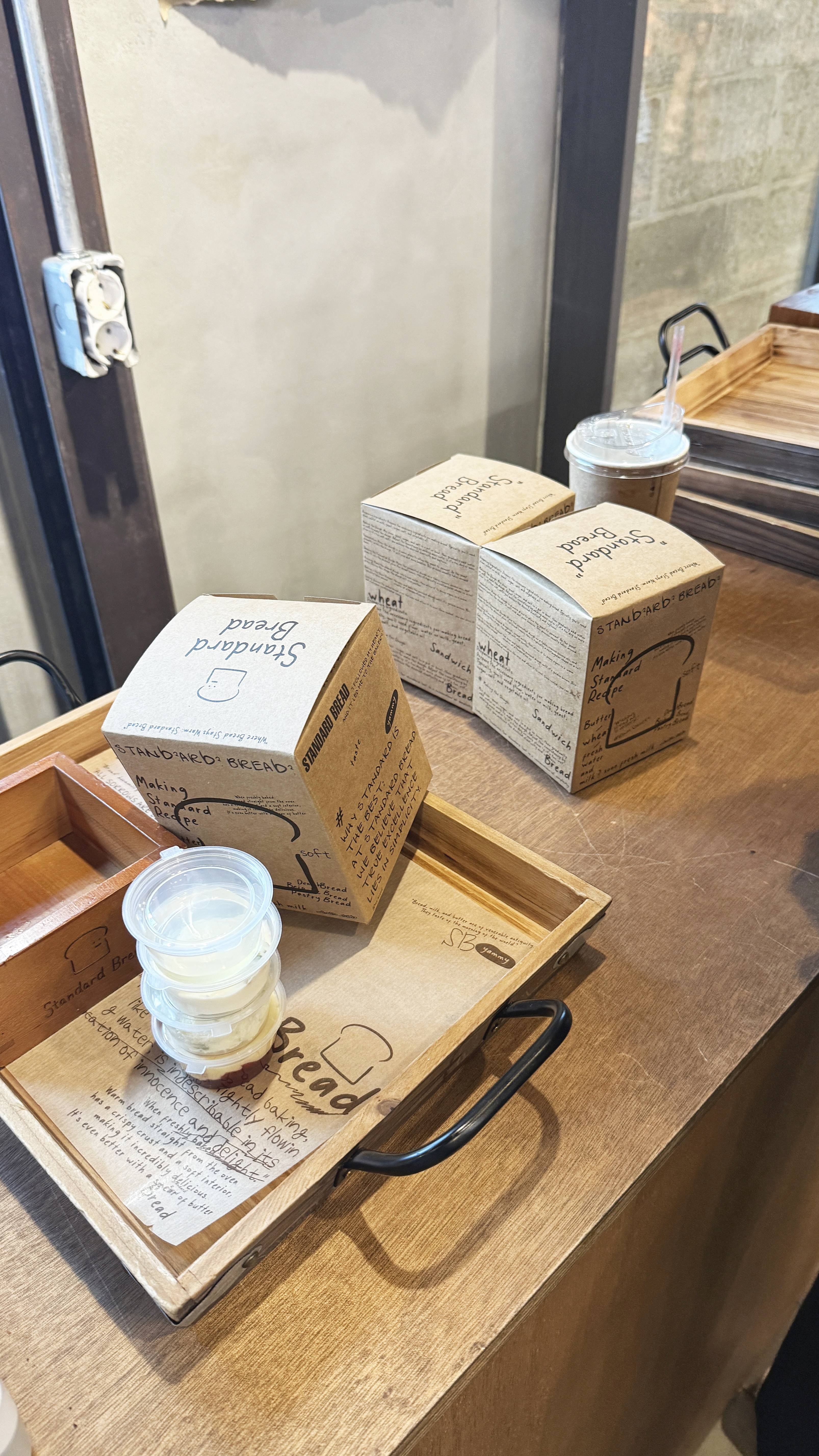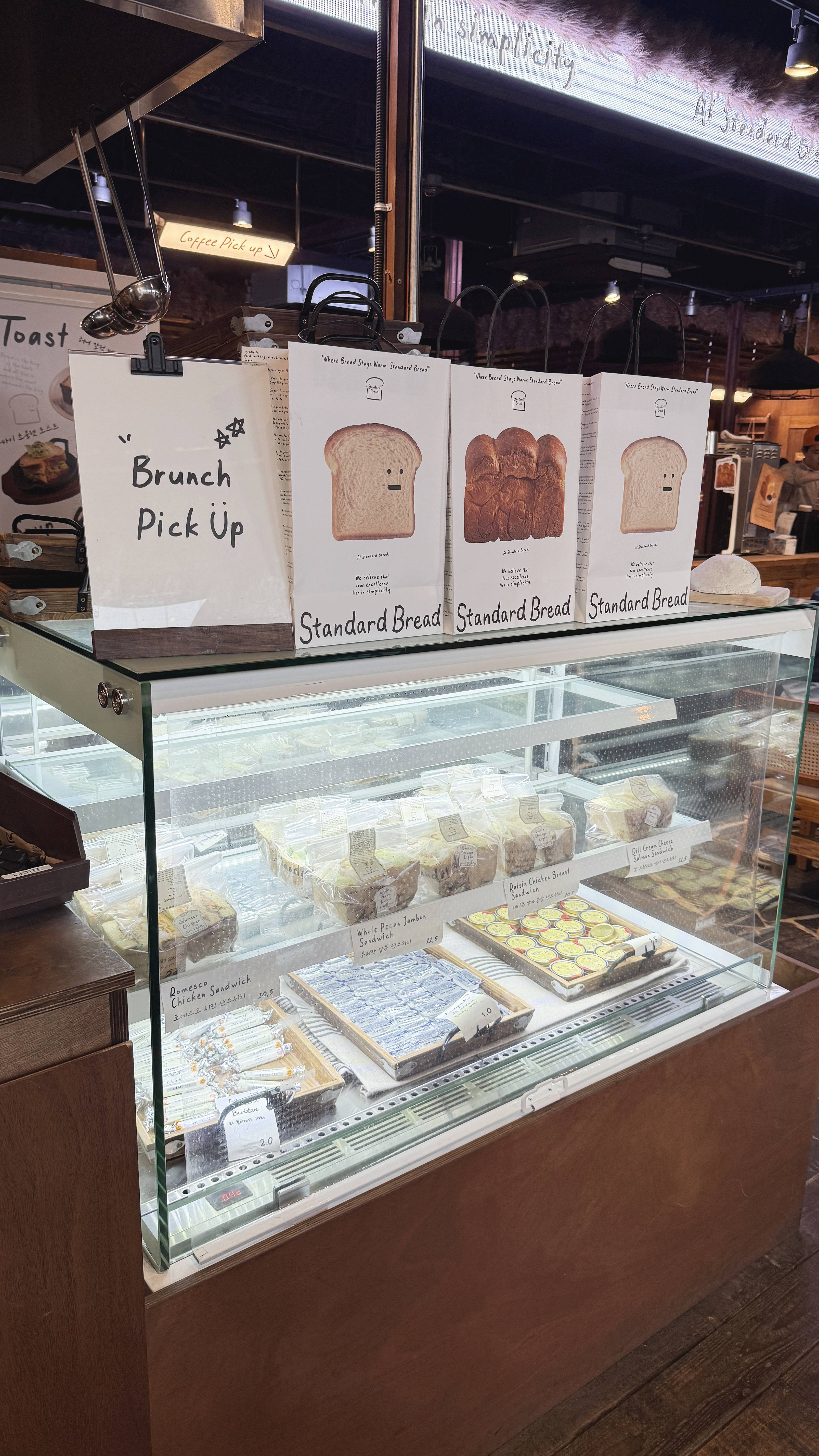 스탠다드 브레드를 즐기는 방법이 있어요, 갓 나온 식빵을 고를 수 있는 브레드존, 먹고 싶은 스프레드와 잼을 고르는 스프레드존, 토스트와 샌드위치, 푸딩이 있는 브런치 존, 빵과 함께 먹을 수 있는 음료존 까지 준비되어있습니다.