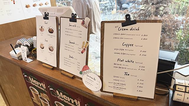 커피랑 티도 고를 수 있고 무엇보다 플렛 화이트도 있네요~ 성수는 어디든 사람이 많아서 이정도 웨이팅은...