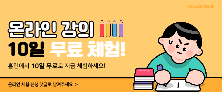 초등홈런기준 0원으로 10일 무료체험 하실 수 있도록 학습 도와드리고 있습니다.