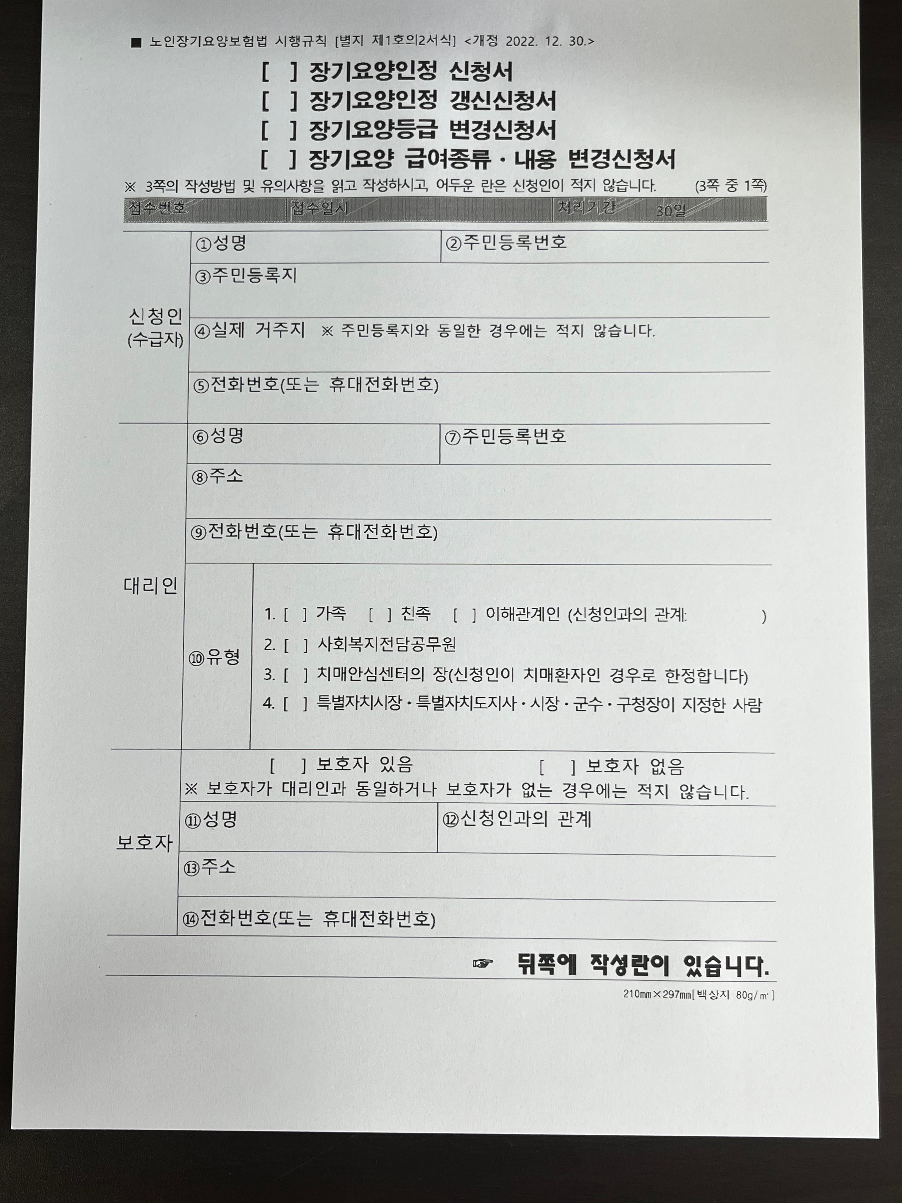 저는 가족요양으로 아버님을 모시고 있는데 요즘 상태가 예전보다 악화되셔서 등급을 변경하기 위해 신청을 했습니다.