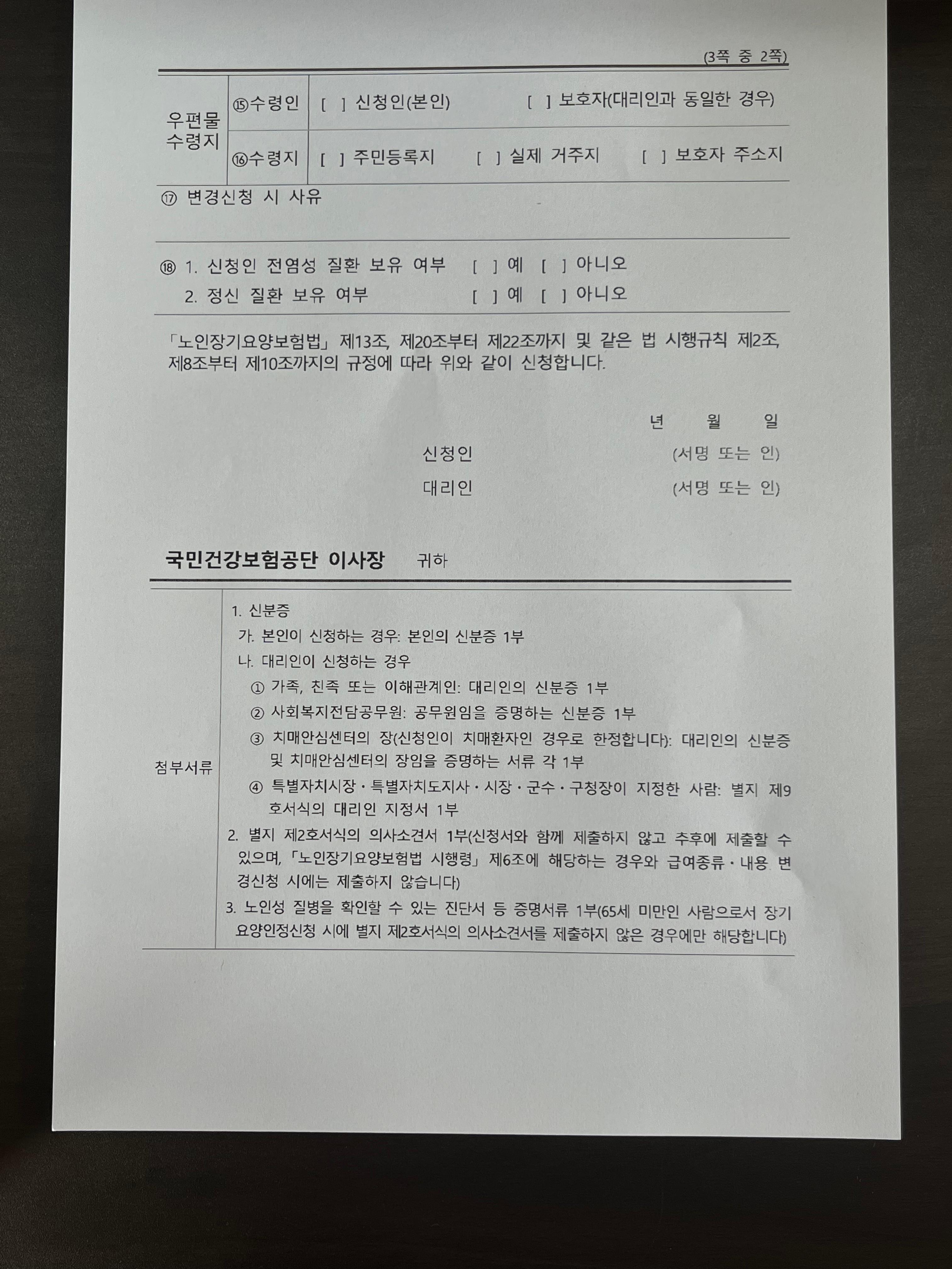 저는 장기요양등급 변경신청을 했습니다. 장기요양 인정을 받은 사람의 심신상태가 호전되거나 악화되어 등급을 변경하는 경우 입니다.