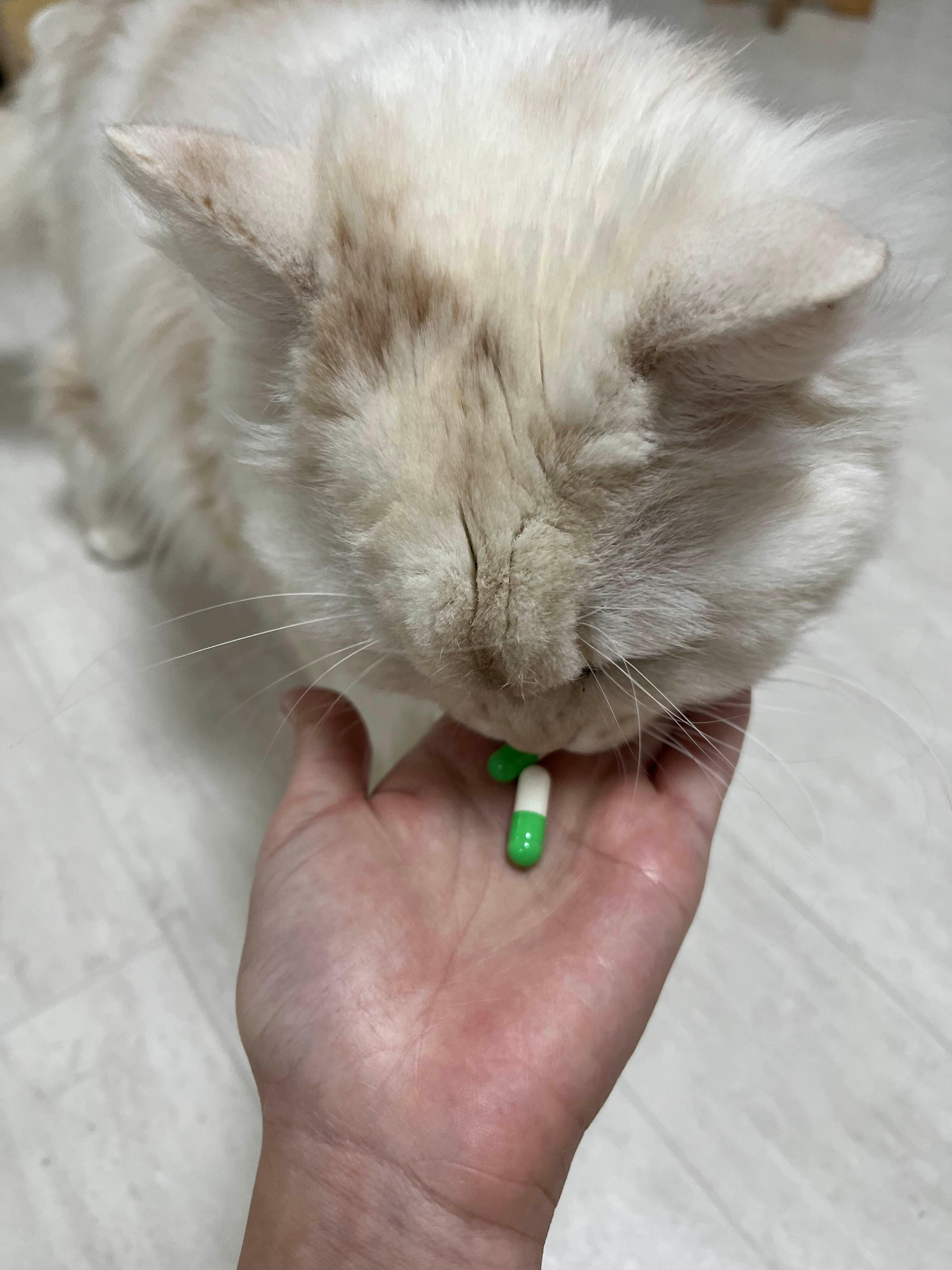 나도 처음에 간식이나 습식캔에 넣어서 줬는데 냄새만 맡고 먹지 않아서 빈 캡슐을 사서 그 안에 넣어주니 그건 잘 먹는다.