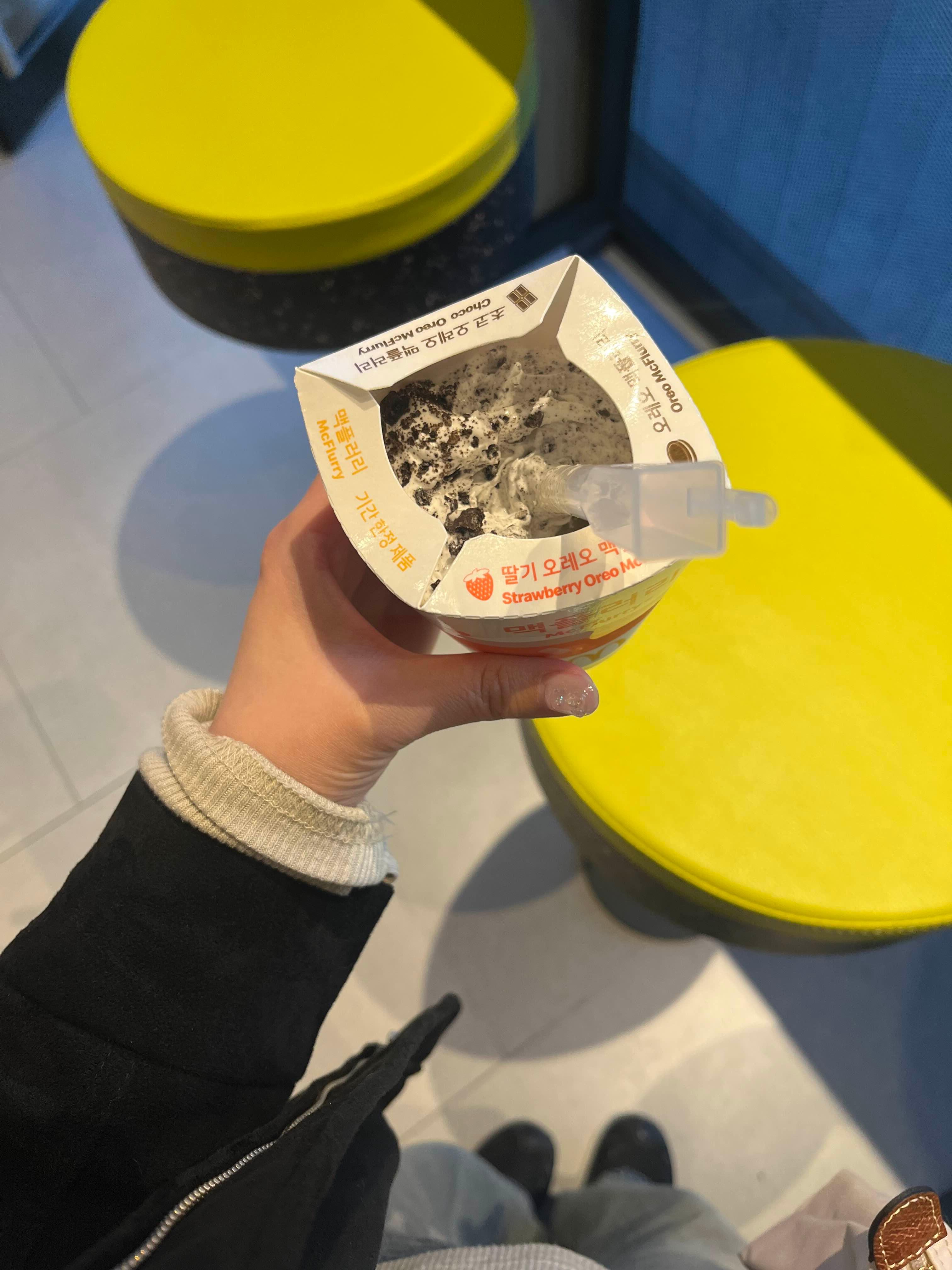 맥플러리도 맛있고, 그리고 이렇게 종이로 만들어진 컵에 테이크아웃해주니 가볍고 여전히 맛있더라구요!