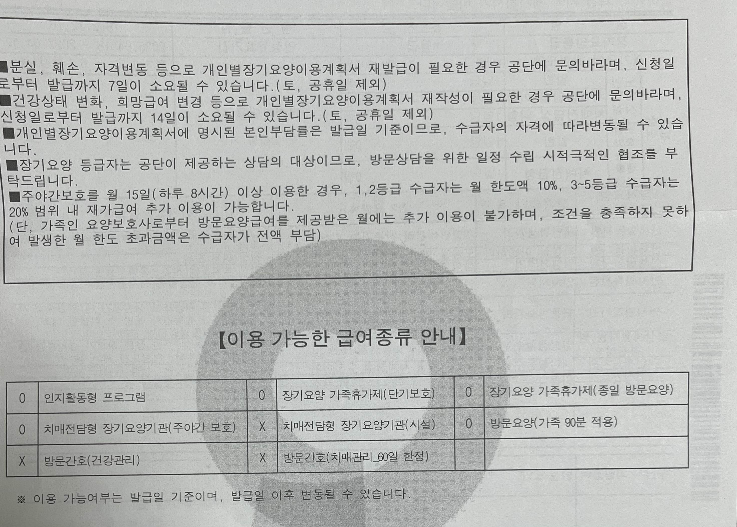 90분 태그는 하루 1회, 90분 이상의 서비스를 제공할 때 사용할 수 있는 기록 방식이다. 60분보다 더 높은 수준의 지원을 의미하며, 수가 또한 상향된다. 이번에 새로 서류를 받았는데 이용 가능한 급여종류가 적혀있다.
