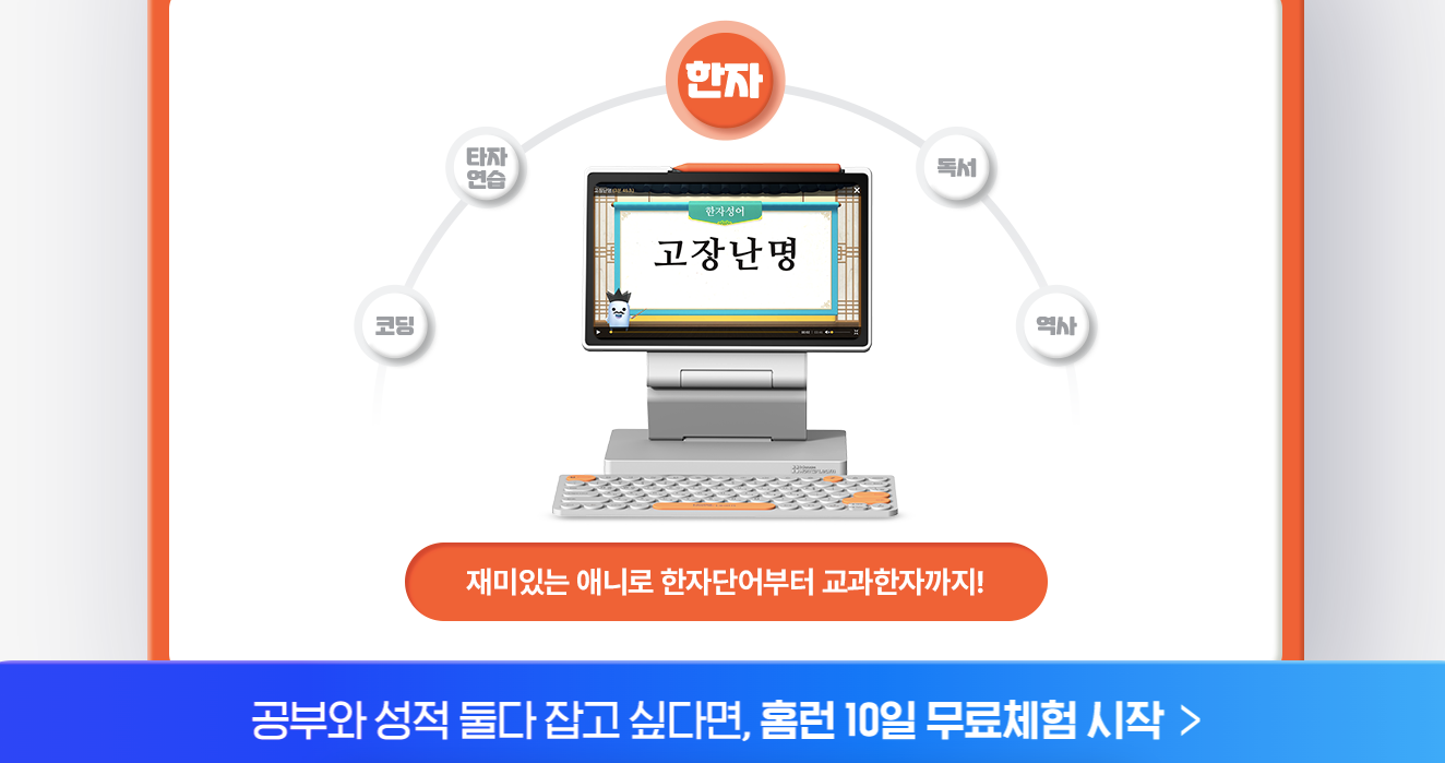 그리고 교과과정뿐만 아니라 코딩, 속담, 타자연습, 인물한국사, 역사 등 다양한 학습도 가능하다.