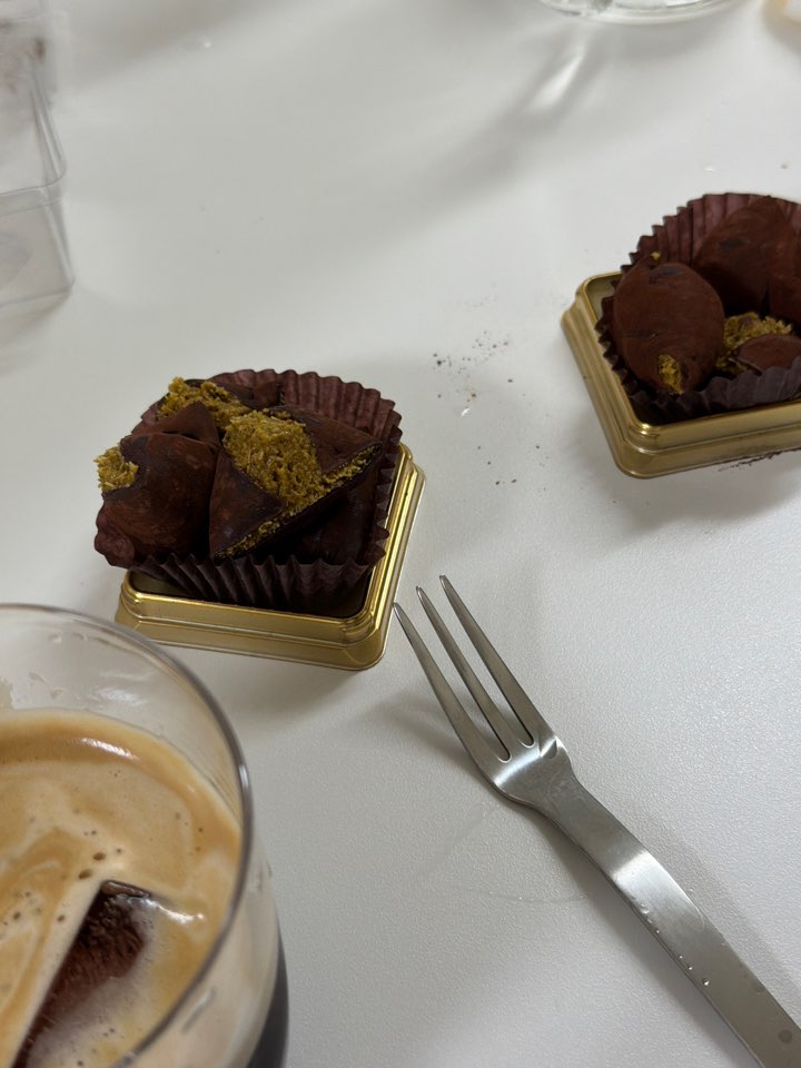 그래서 레시피를 보았는데 마시멜로를 녹이고 코코아파우더를 섞어서 피를 만들고, 안에는 피스타치오를 볶아서 갈아서 카다이프면이랑 볶아서 만들었다. 엄청 달고 고소하고 커피랑 먹으면 딱이다. 도대체 이거 어떻게 끊어요..?