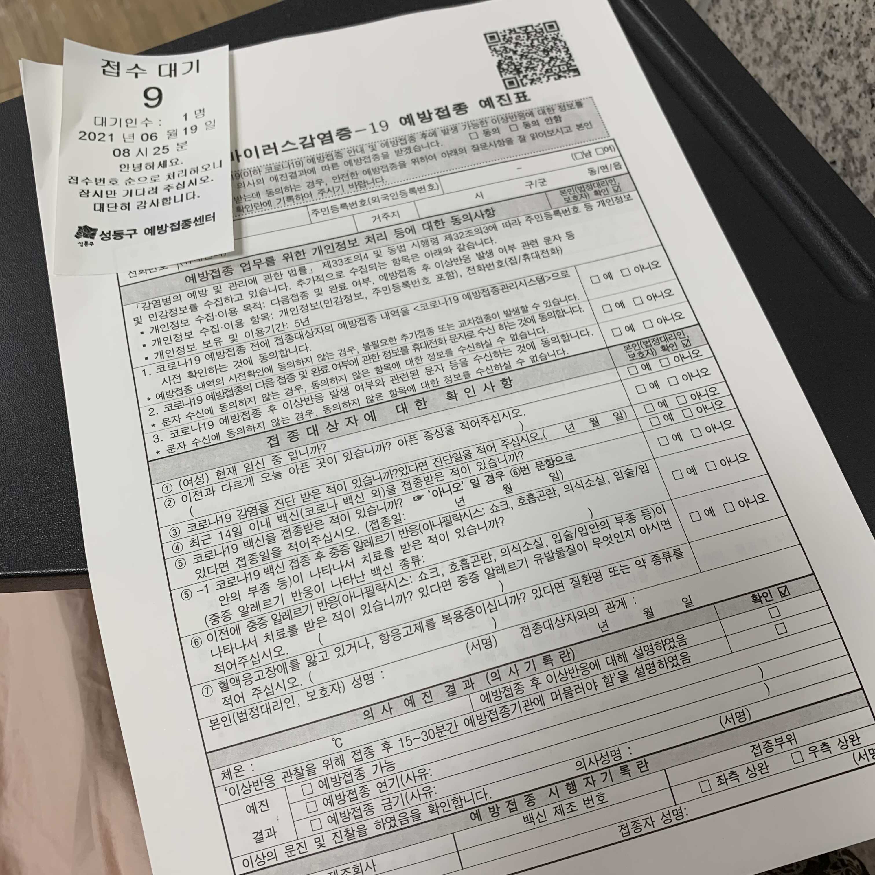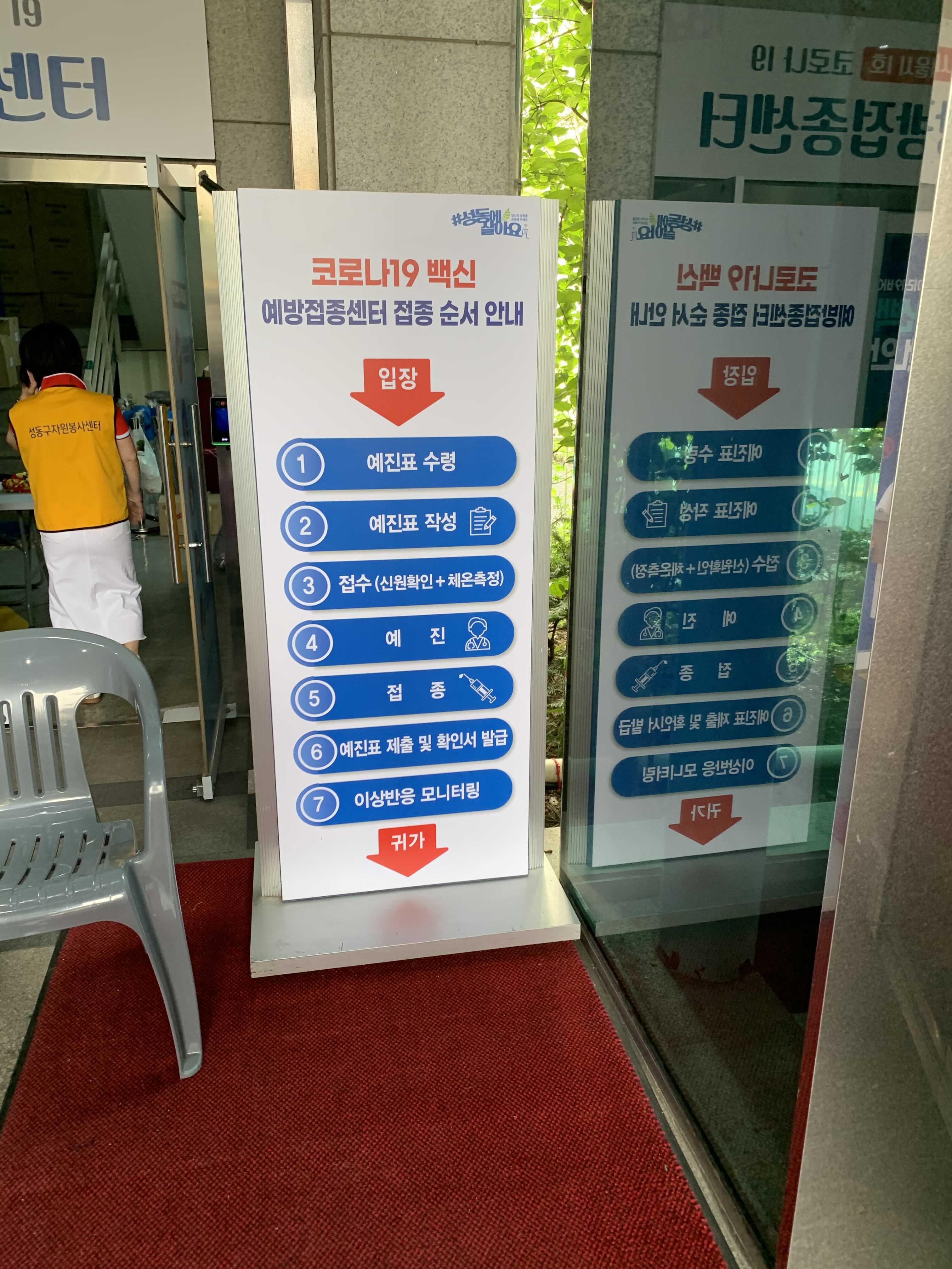 집은 중랑구인데 토요일에 접종하려고 하니 노원구, 도봉구 전부 다 마감이더라구요. 그래서 성동구까지 가게 되었다는...