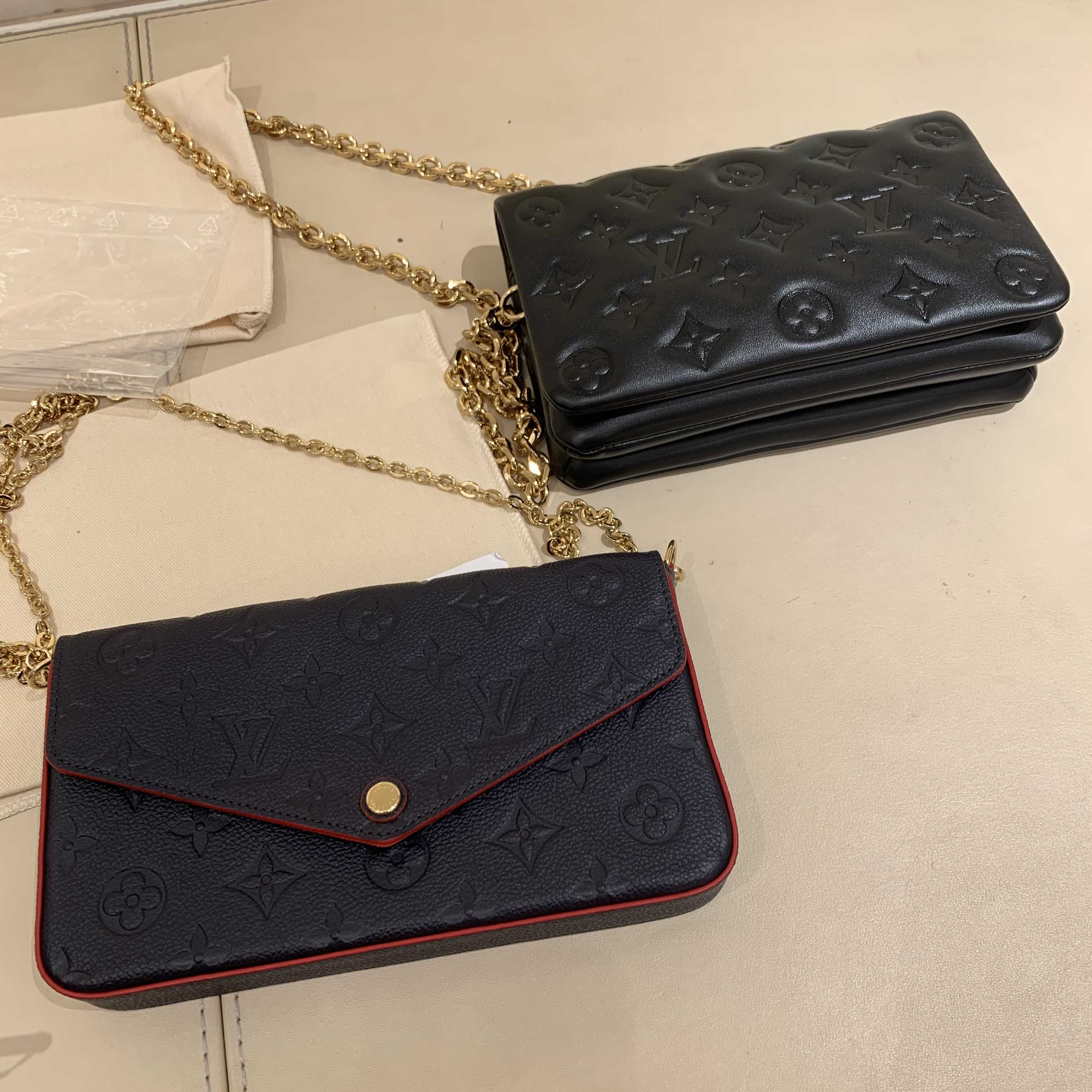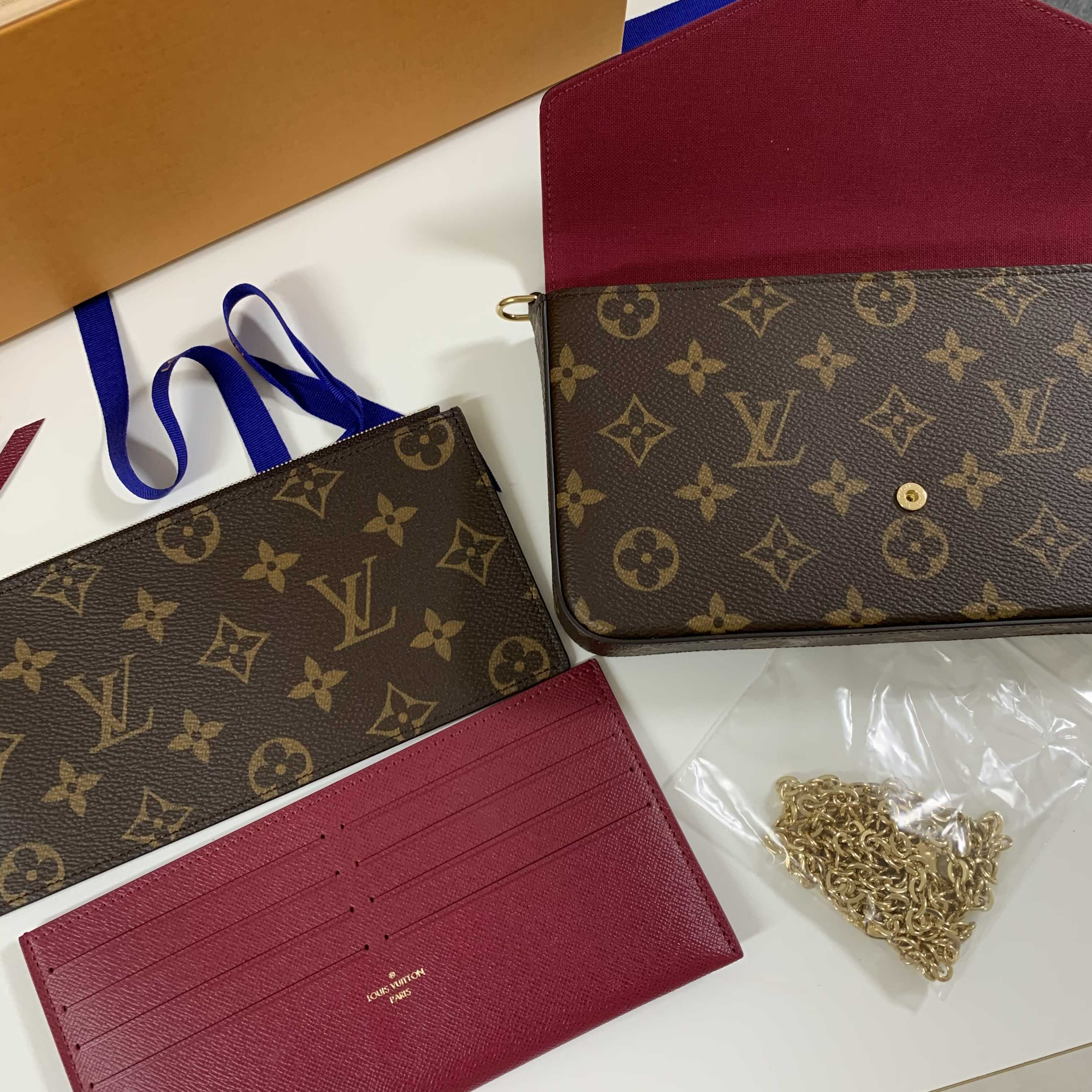 모노그램 캔버스 소재의 포쉐트 펠리시는 데일리 필수품을 스타일리시하게 휴대할 수 있는 아이템입니다.