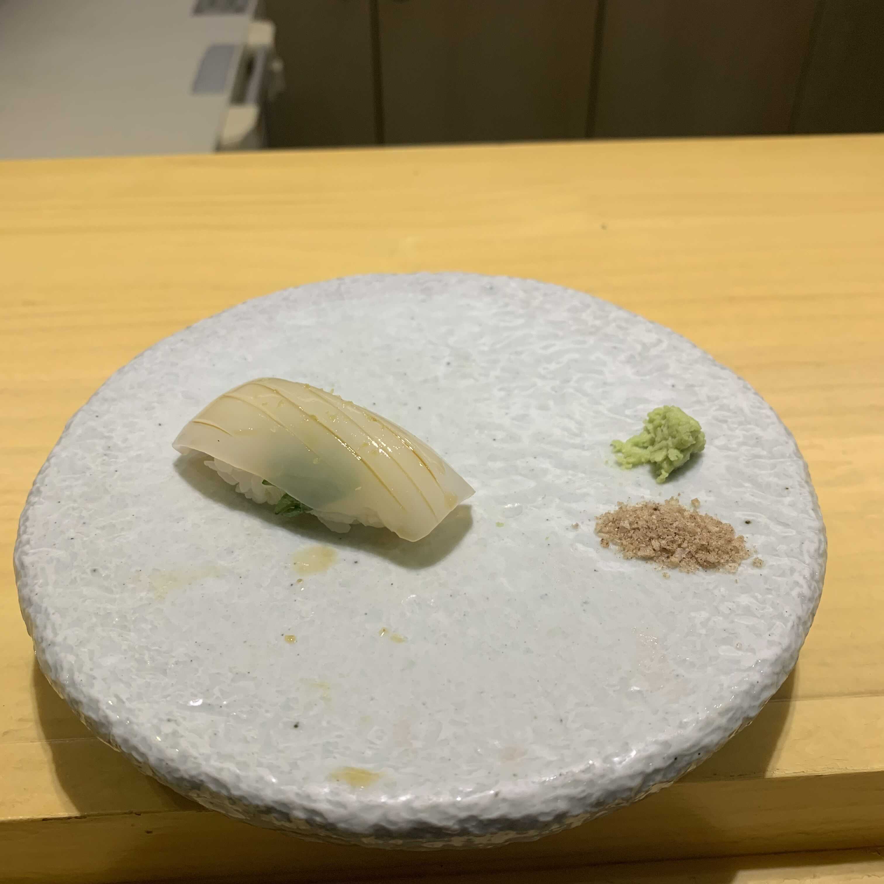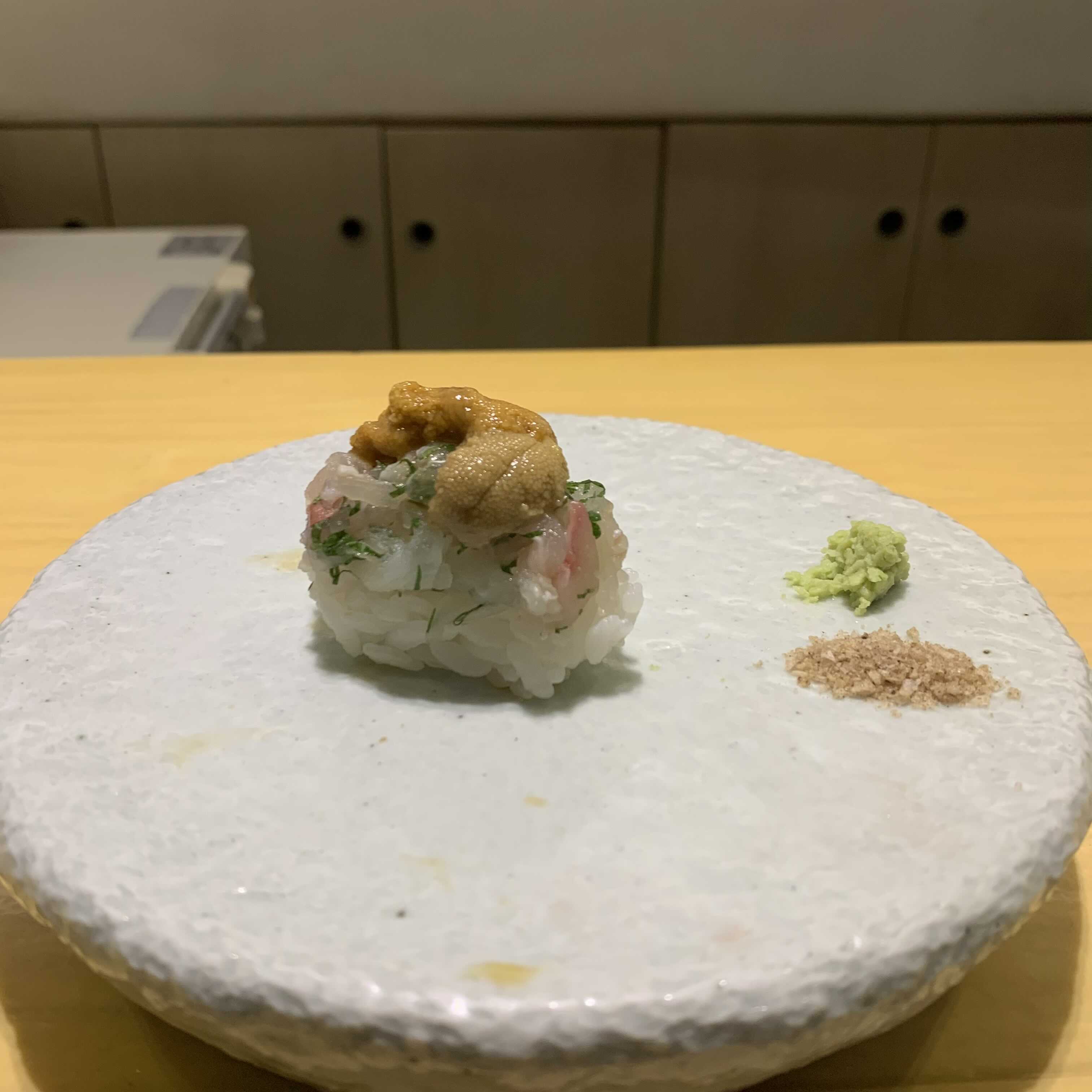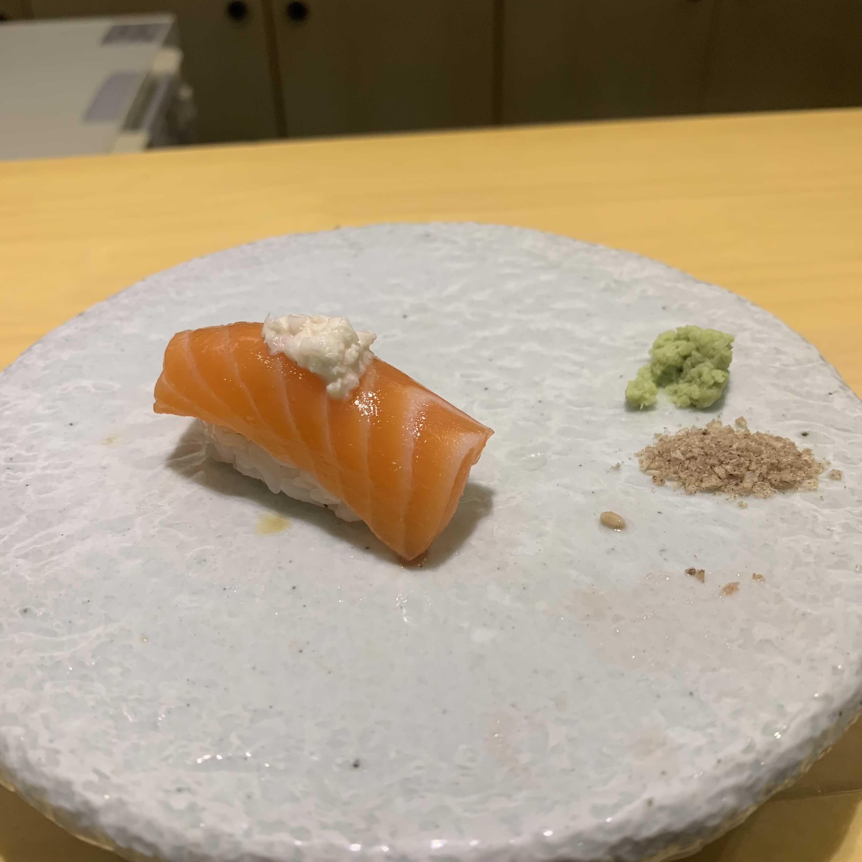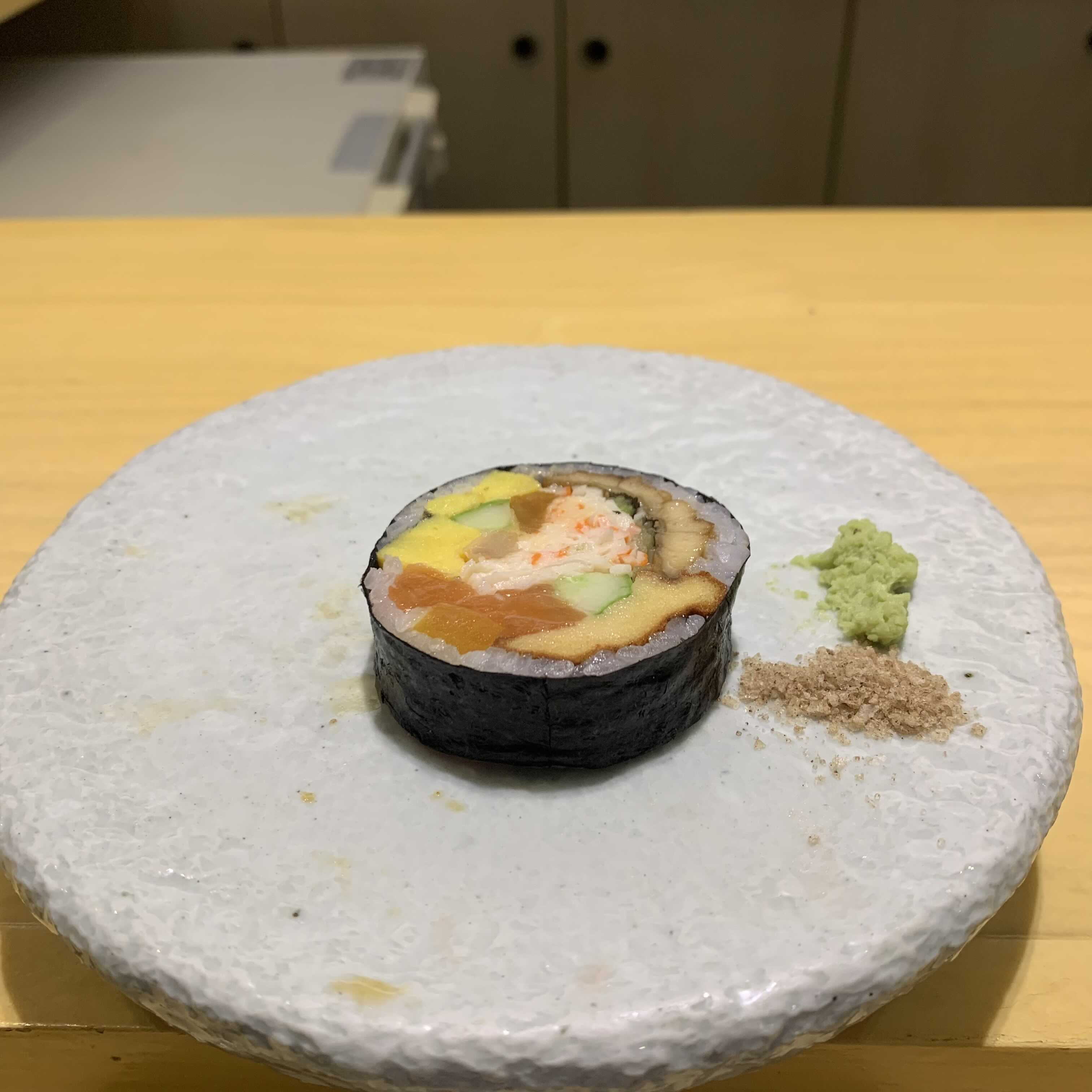바 말고도 테이블 자리도 있는데, 테이블자리는 한 접시에 스시를 가득 담아주시더라구요. 쉐프님이 직접 접시에 주는 모습은 못봐서 아쉬울거같지만 그래도 스시는 진짜 맛있어서 여럿이 오면 이 자리도 괜찮을거같아요!