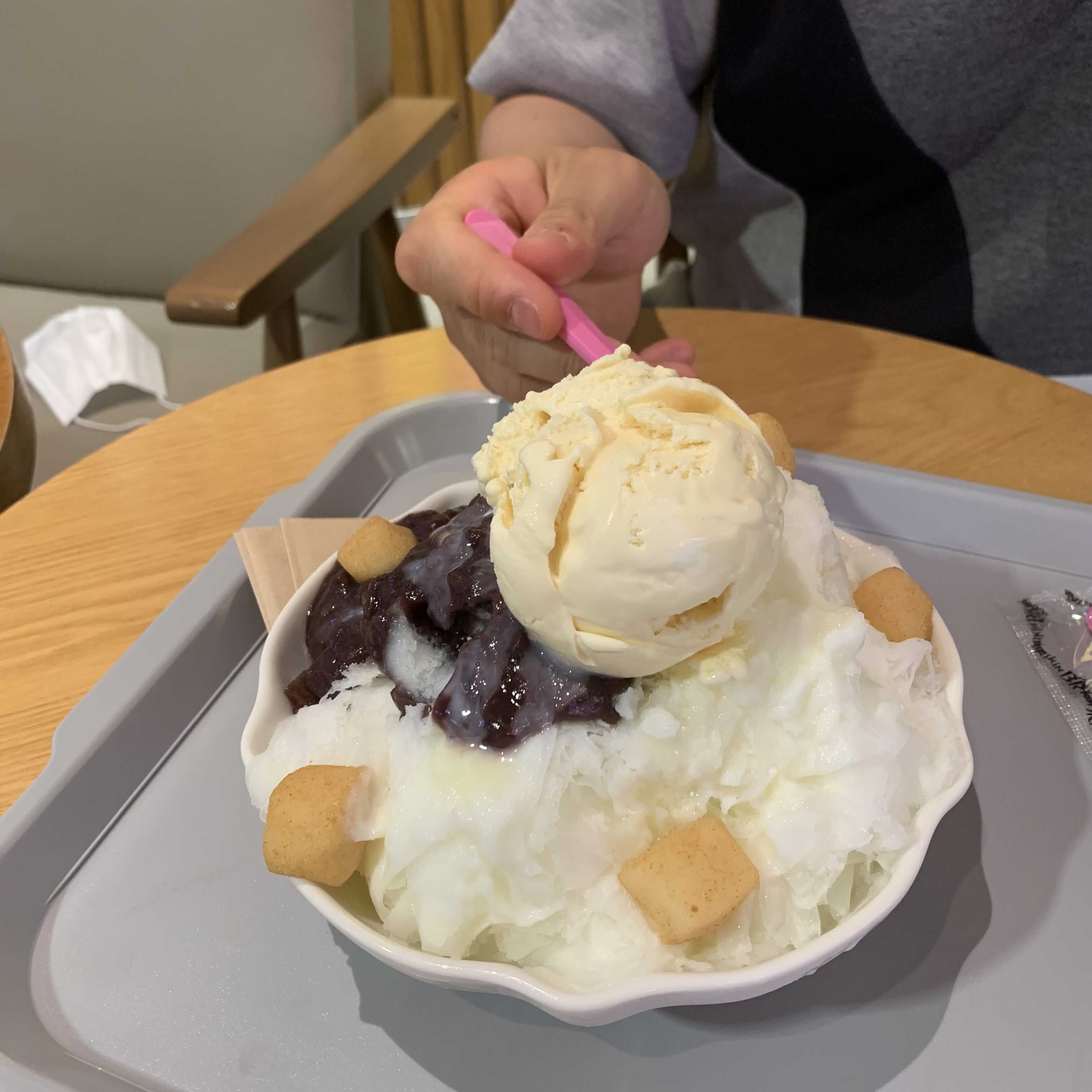 그리고 무엇보다 아이스크림 한 스쿱 가득이라 부드럽고 맛있어요. 저녁에 산책하러 나왔다가 빙수 포장해가도 좋을거같아요.