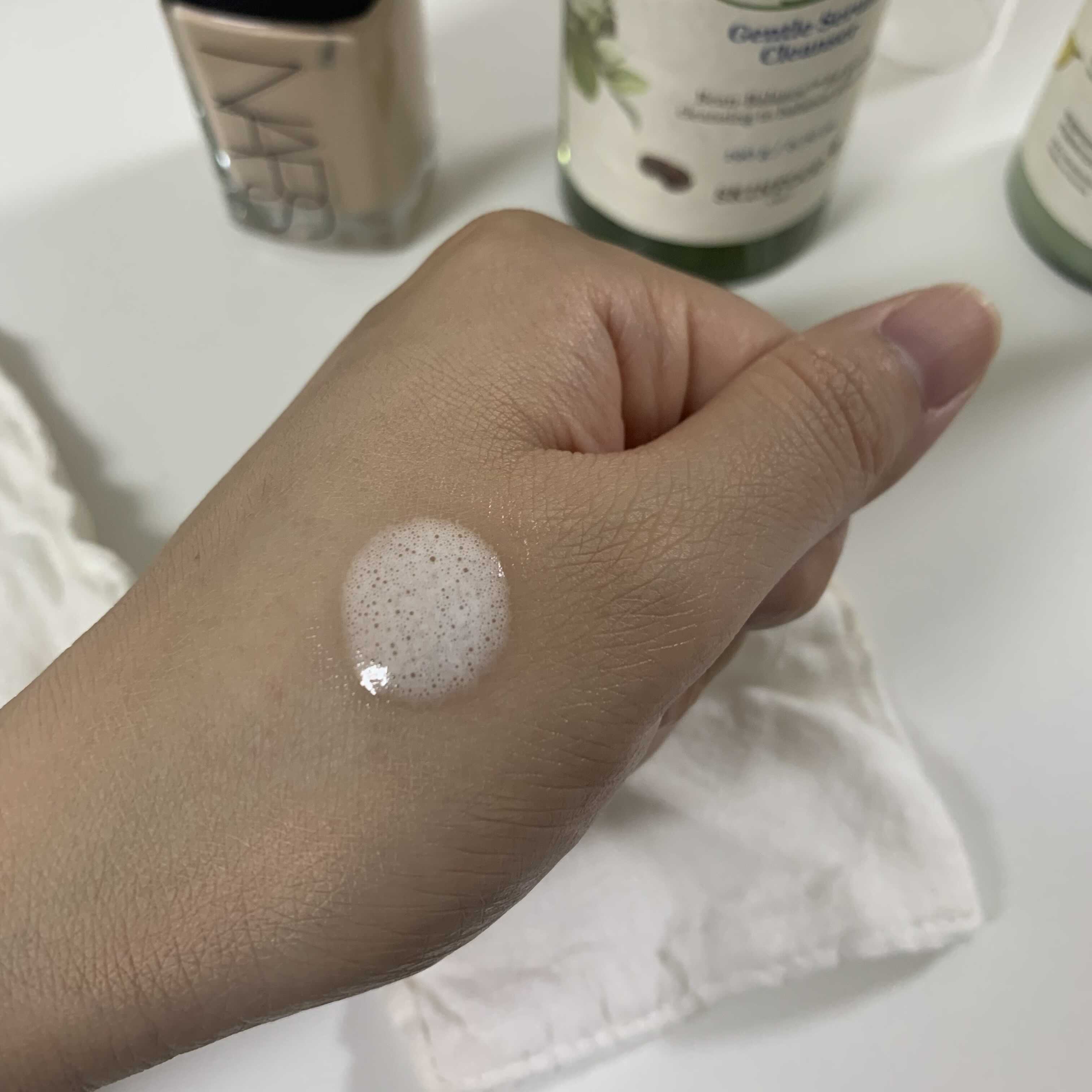 물기 있는 얼굴에도 사용할 수 있어요. 가볍게 소량 펌핑한 후 부드럽게 거품을 내어 세안하기!