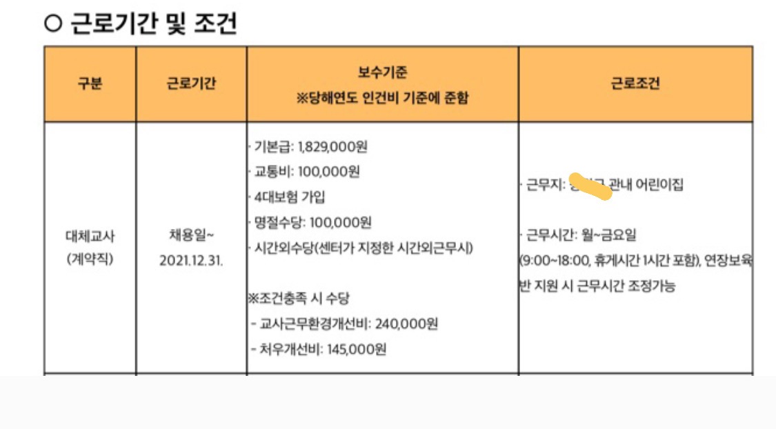 육아종합지원센터 대체교사는 급여가 전국적으로 동일한거 같아요. 구인에 올라온 정보들 보면 거의 대부분 이렇게 적혀있어요!