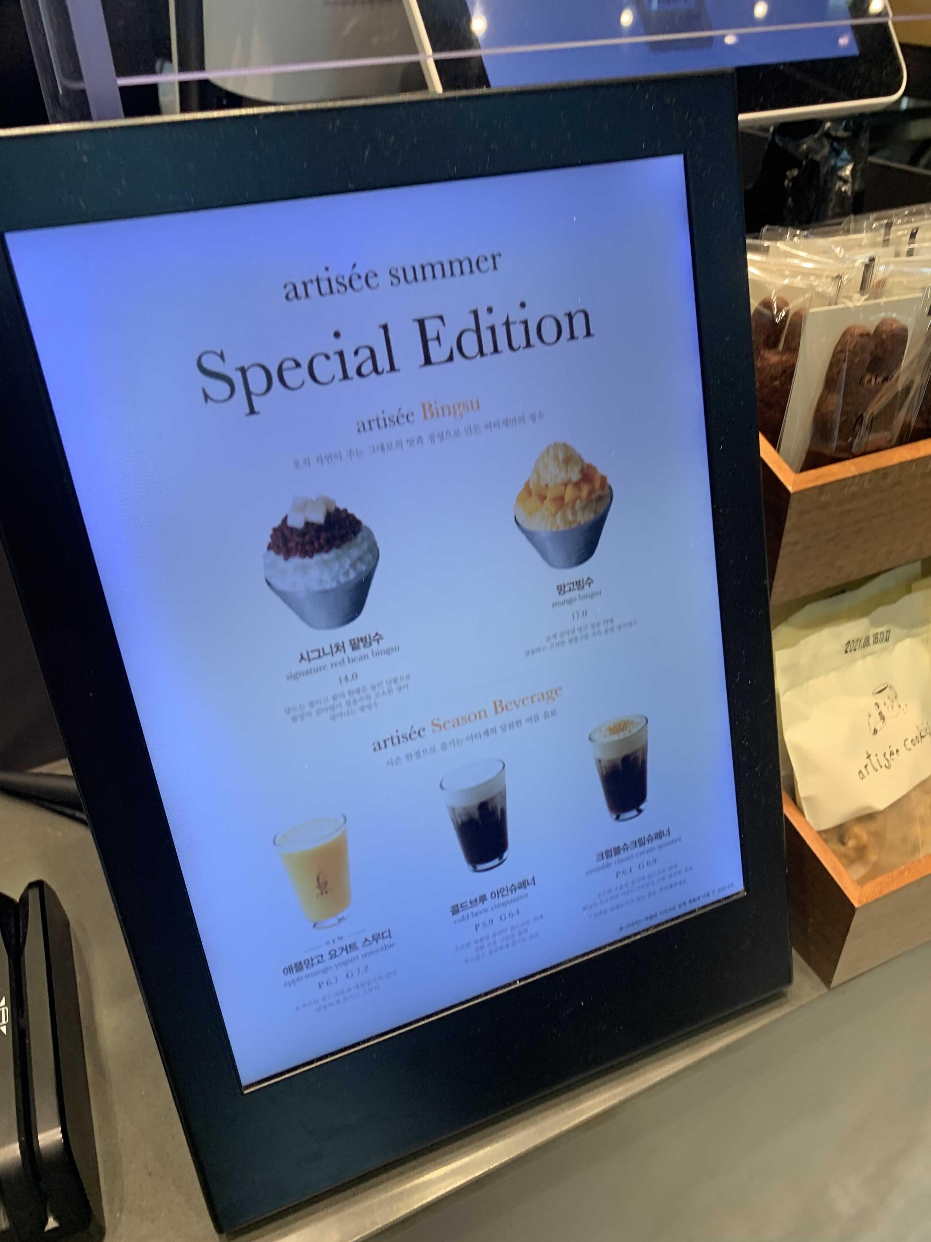 아티제 여름 빙수! 두종류인데요~~ 가격은 시그니처 팥빙수는 14,000원 / 망고 빙수는 17,000원 입니다!