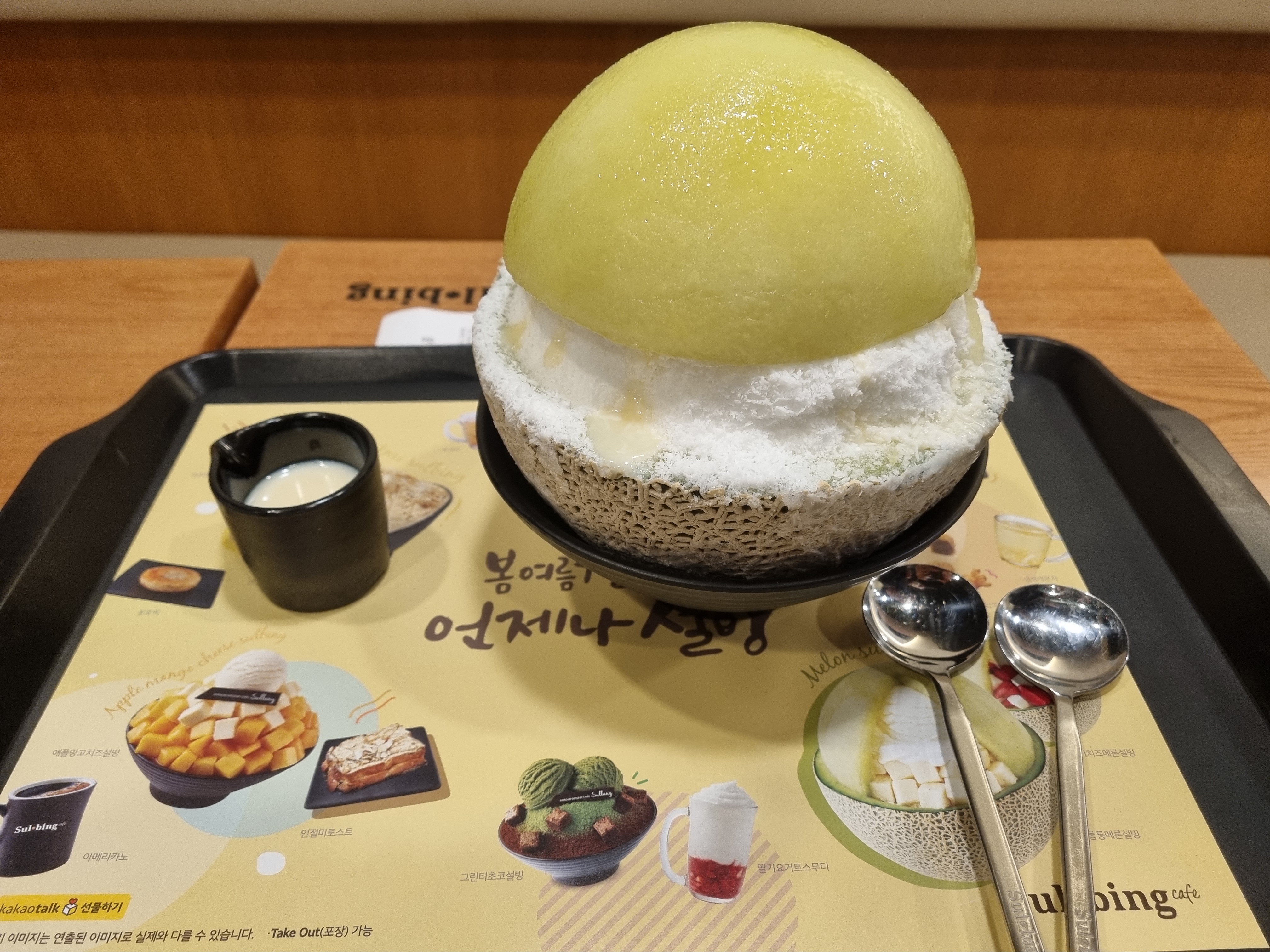 주문한 빙수가 나왔습니당! 메론 진짜 크더라구요-!