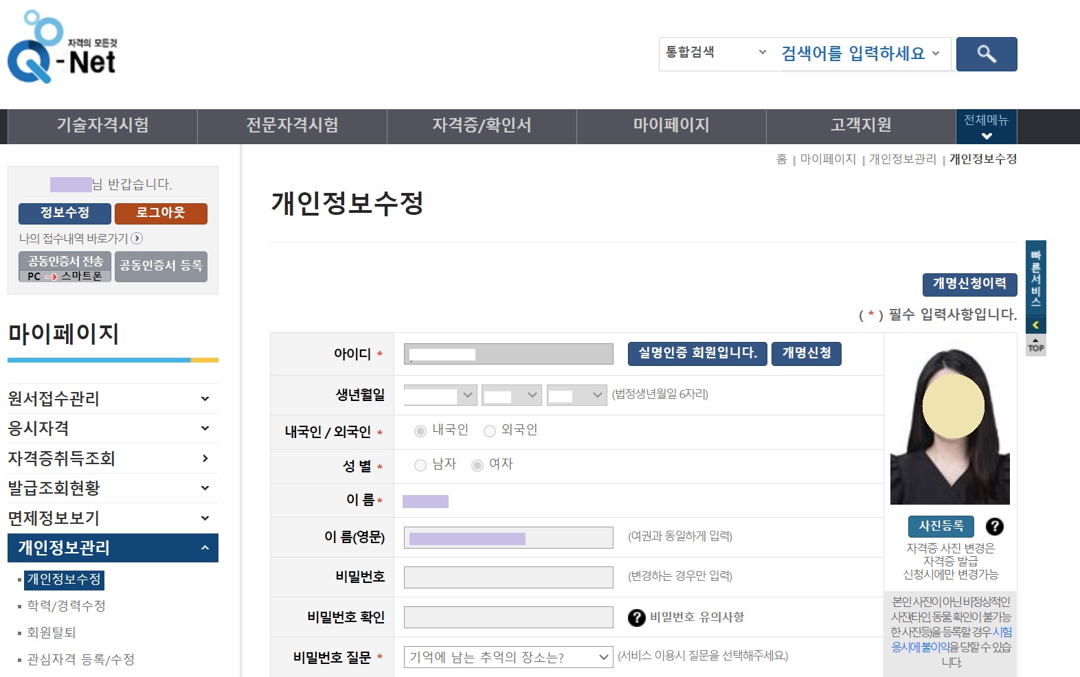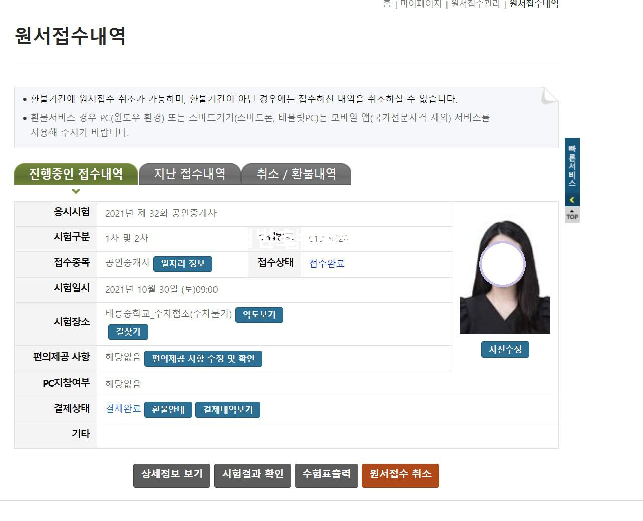 시험 전에 사진 규격을 바꿔주었어요! 사진은 최근에 접수하기 위해 여권사진을 미리 찍었답니다!