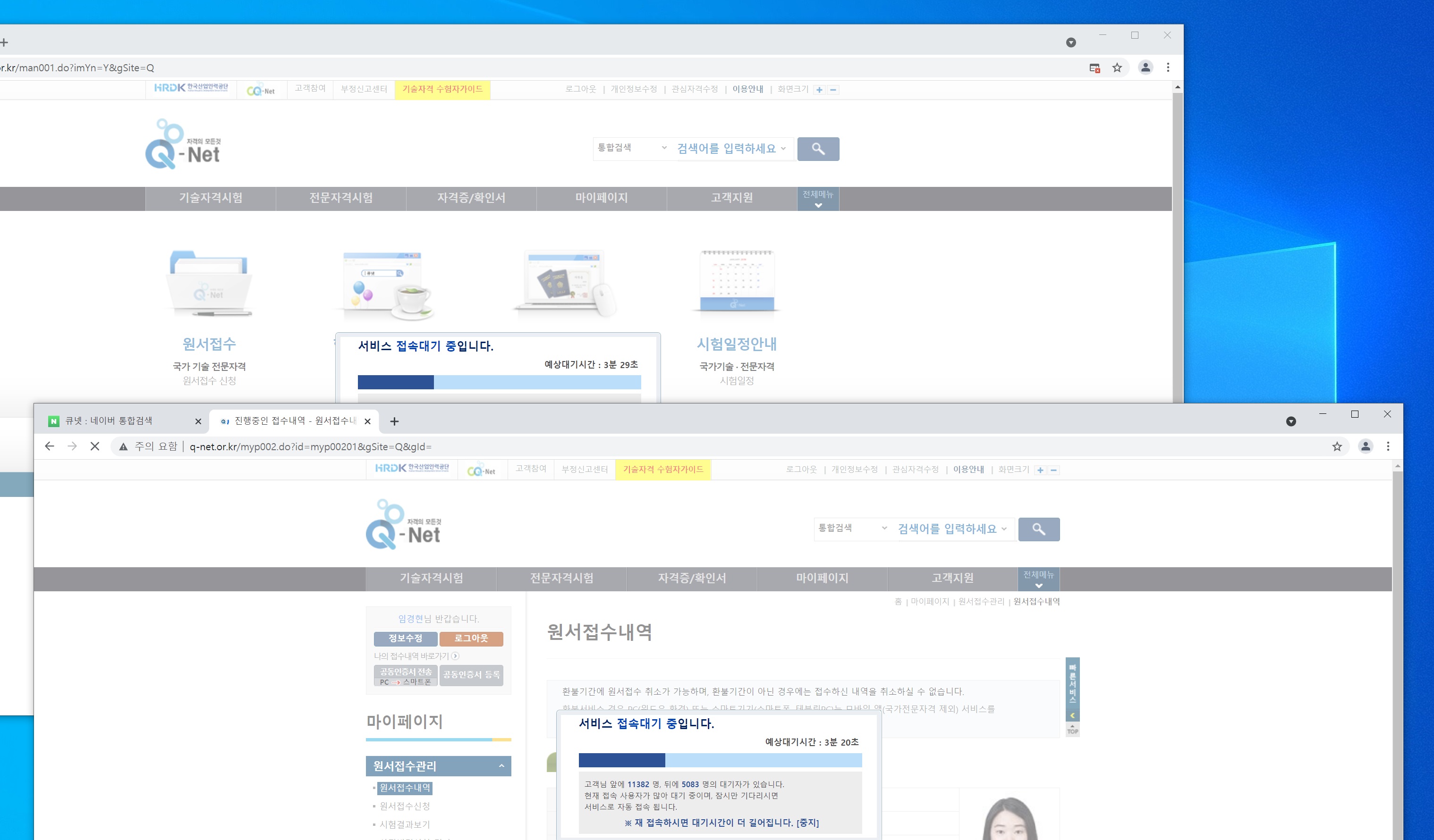 접수팁! 저는 창을 이렇게 두개 켜놓고 했어요. 하나가 튕겨도 다른 하나는 살아있으니 번갈아가면서..