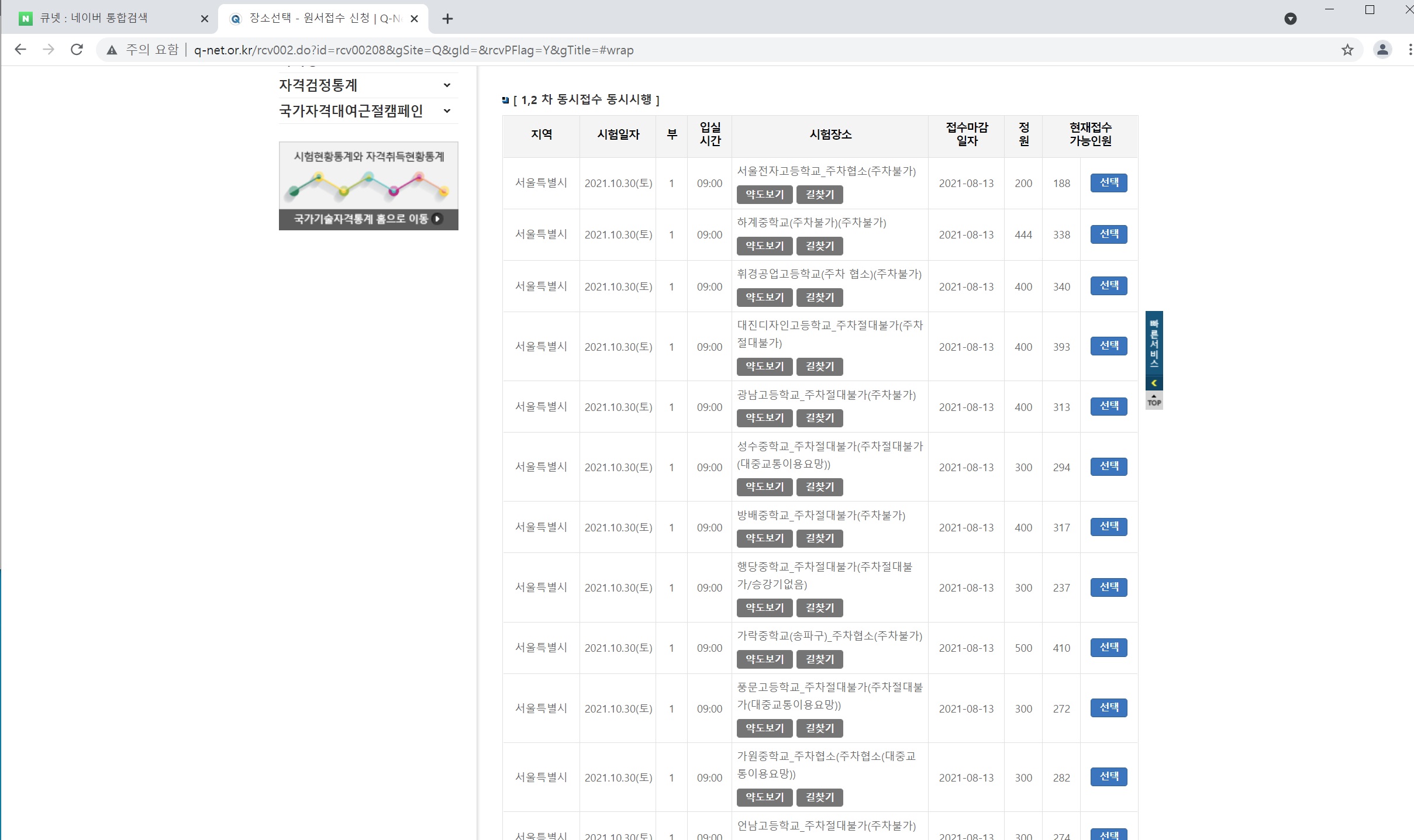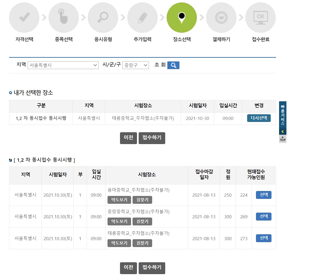 저는 1,2차 동시접수 동시시행이고 중랑구 시험장소 검색해보니 3곳이 나와요.