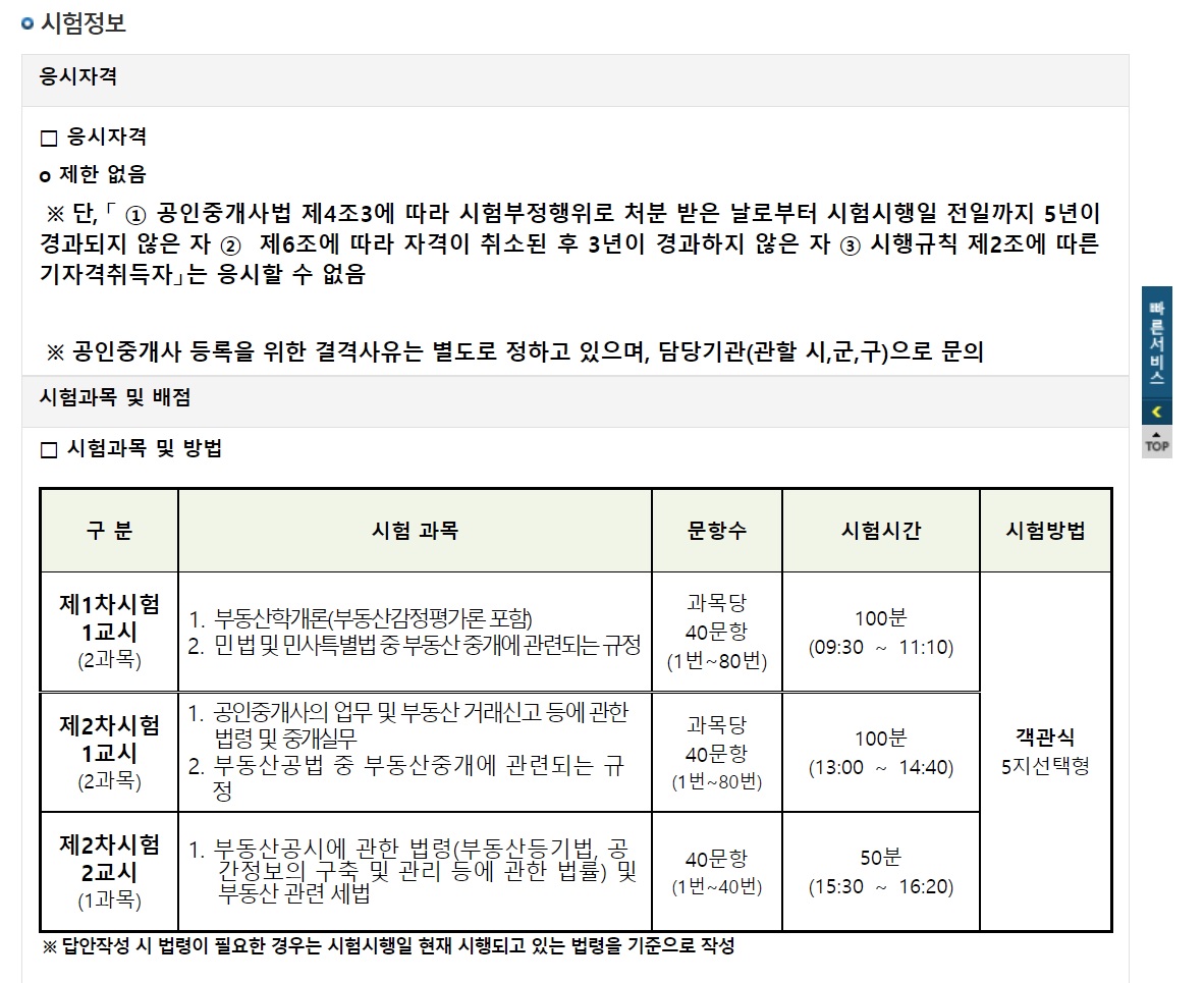 공인중개사 응시자격과 시험과목은 위 사진 참고해주세요.