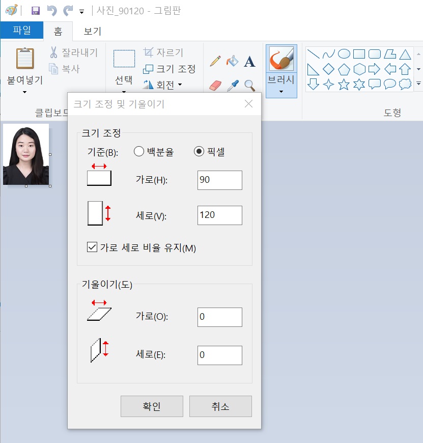 픽셀 바꾸기 , 픽셀 설정하는 방법은 이렇게 그림판에서 가능해요! 크기 조정 및 기울이기에 있습니다!