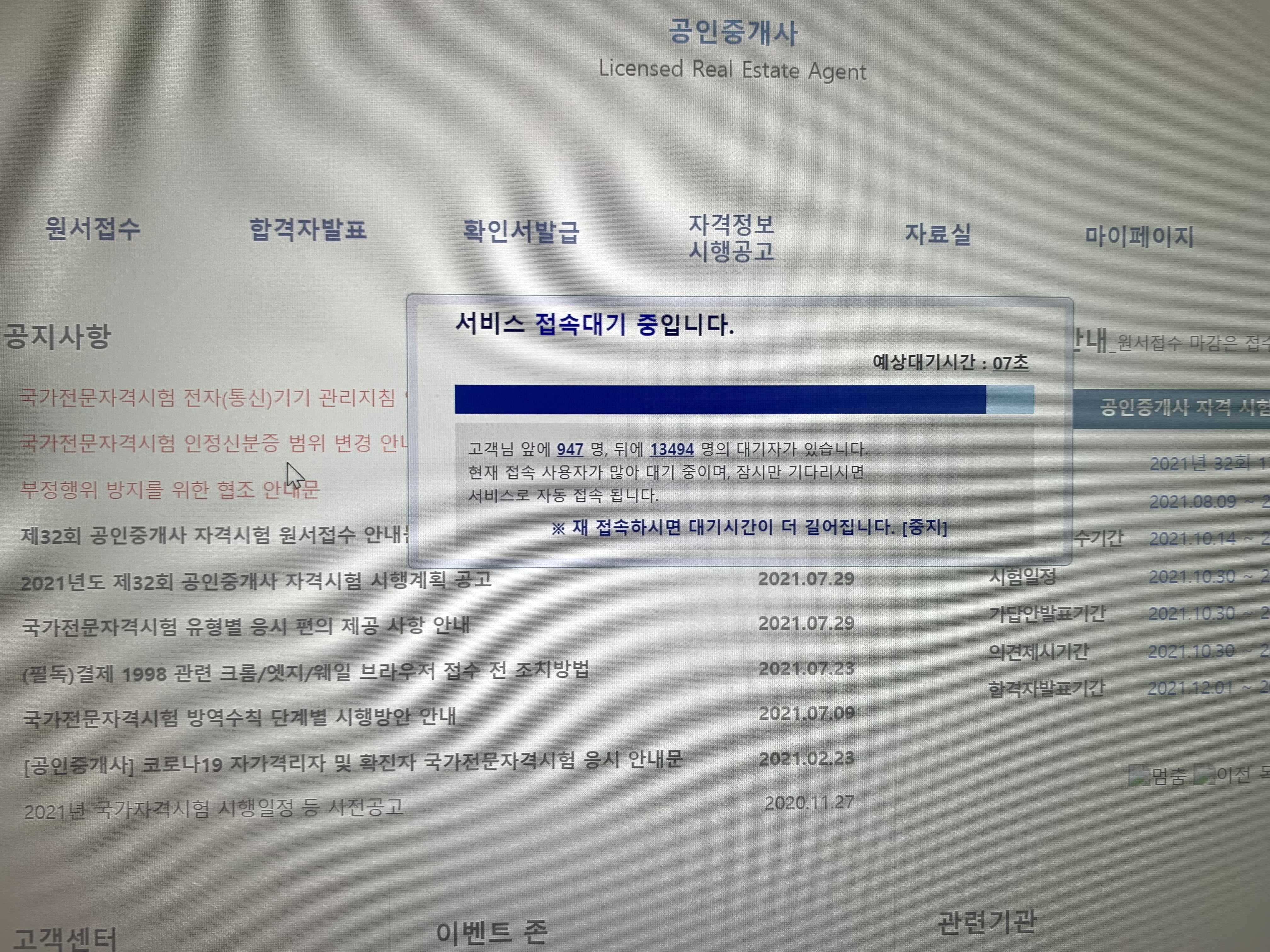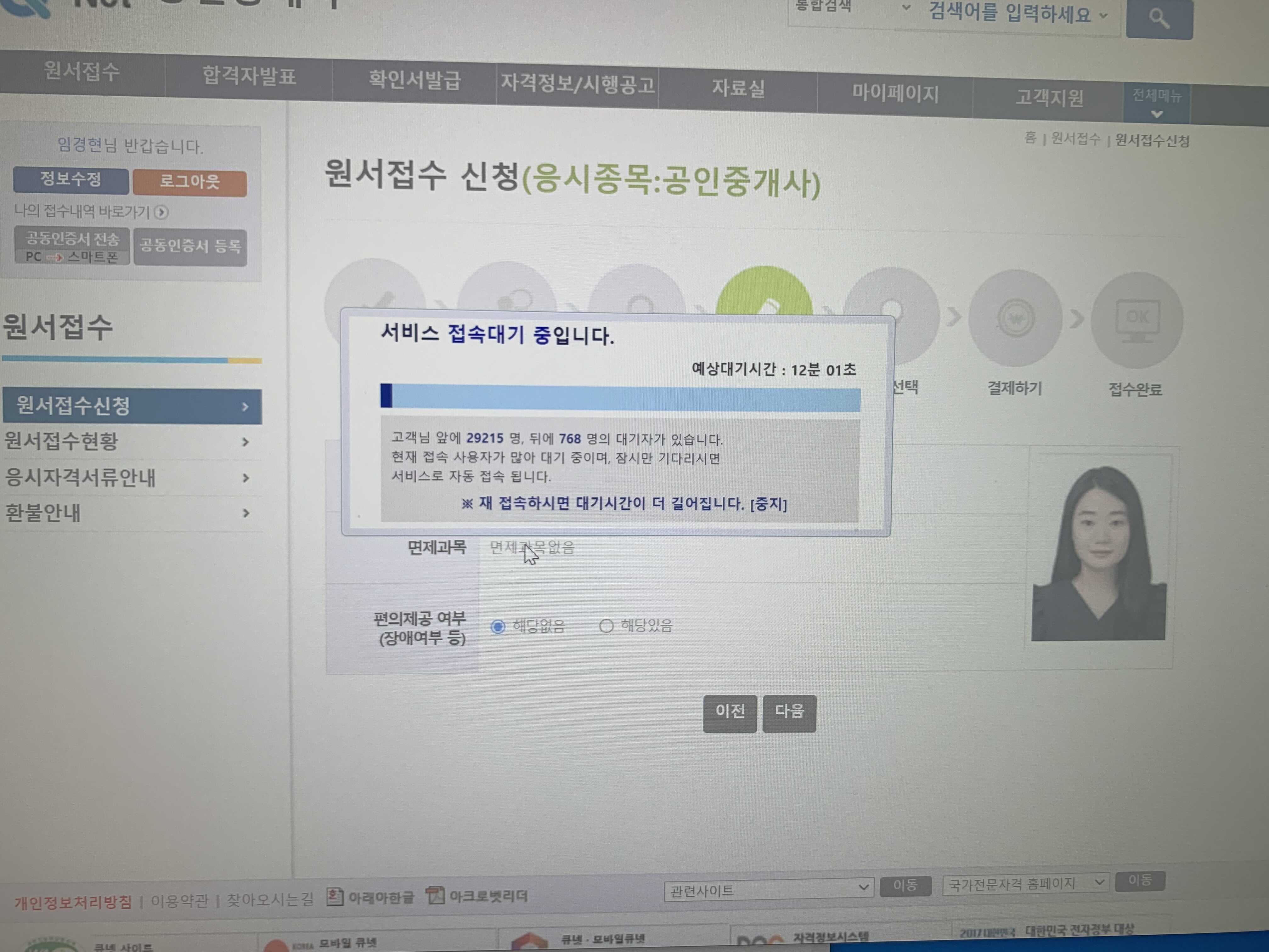 당일 접수중.. 8시30분 부터 컴퓨터 틀어놓고 대기했는데 진짜 이거 전국민 다보는 시험인가요..?