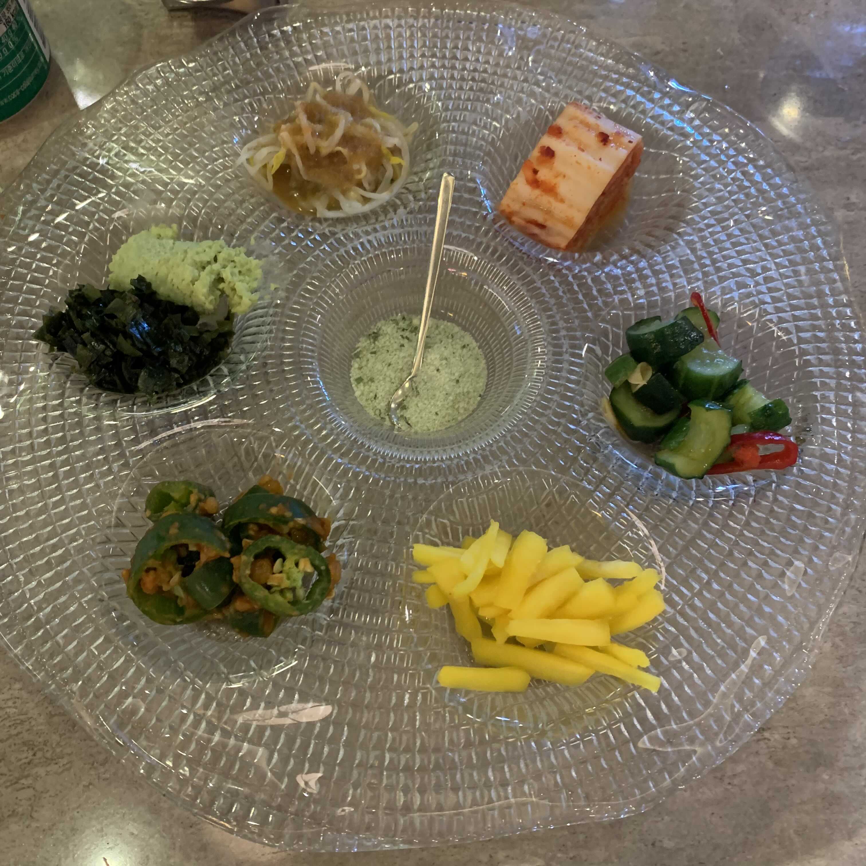 밑반찬은 이렇게 나오는데 직원분이 하나씩 다 설명해주신답니다~~ 이야기 꽃을 피우느라 뭐였는지 기억기 나지 않아요…