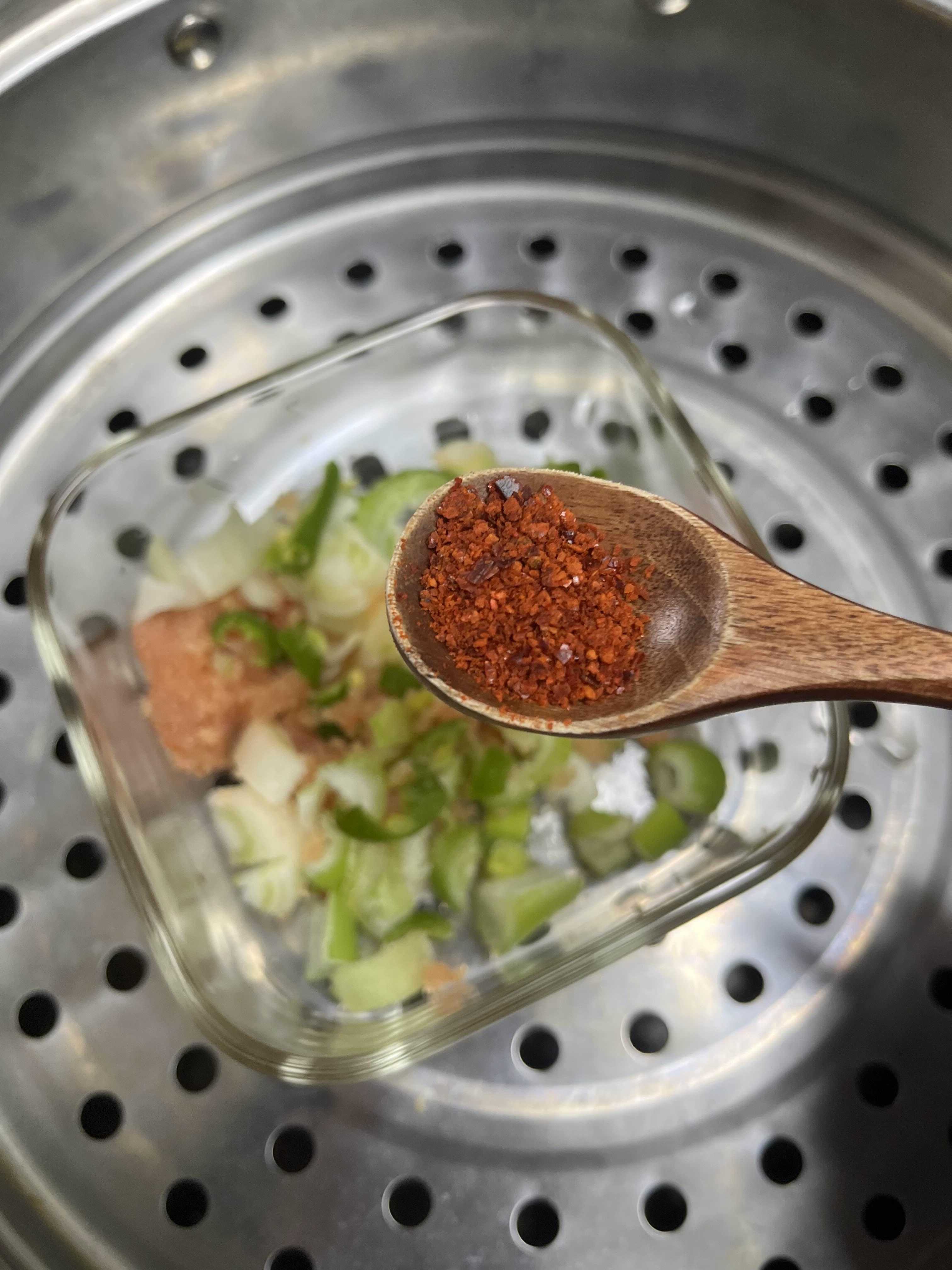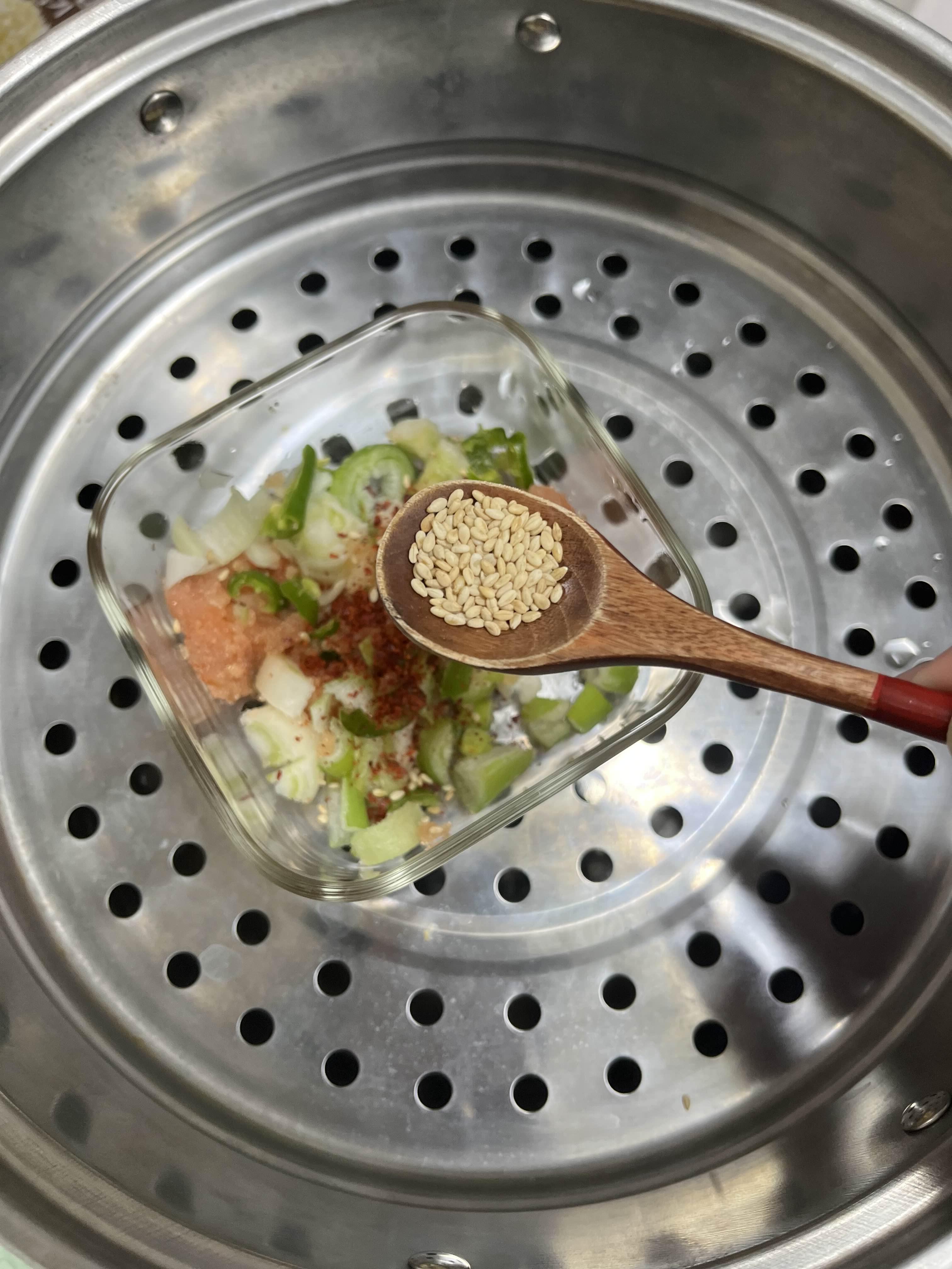 아 다 하고나서 조금 후회한건 찜기에 넣기 전에 한번 수저로 저었으면 더 잘 섞였을텐데
