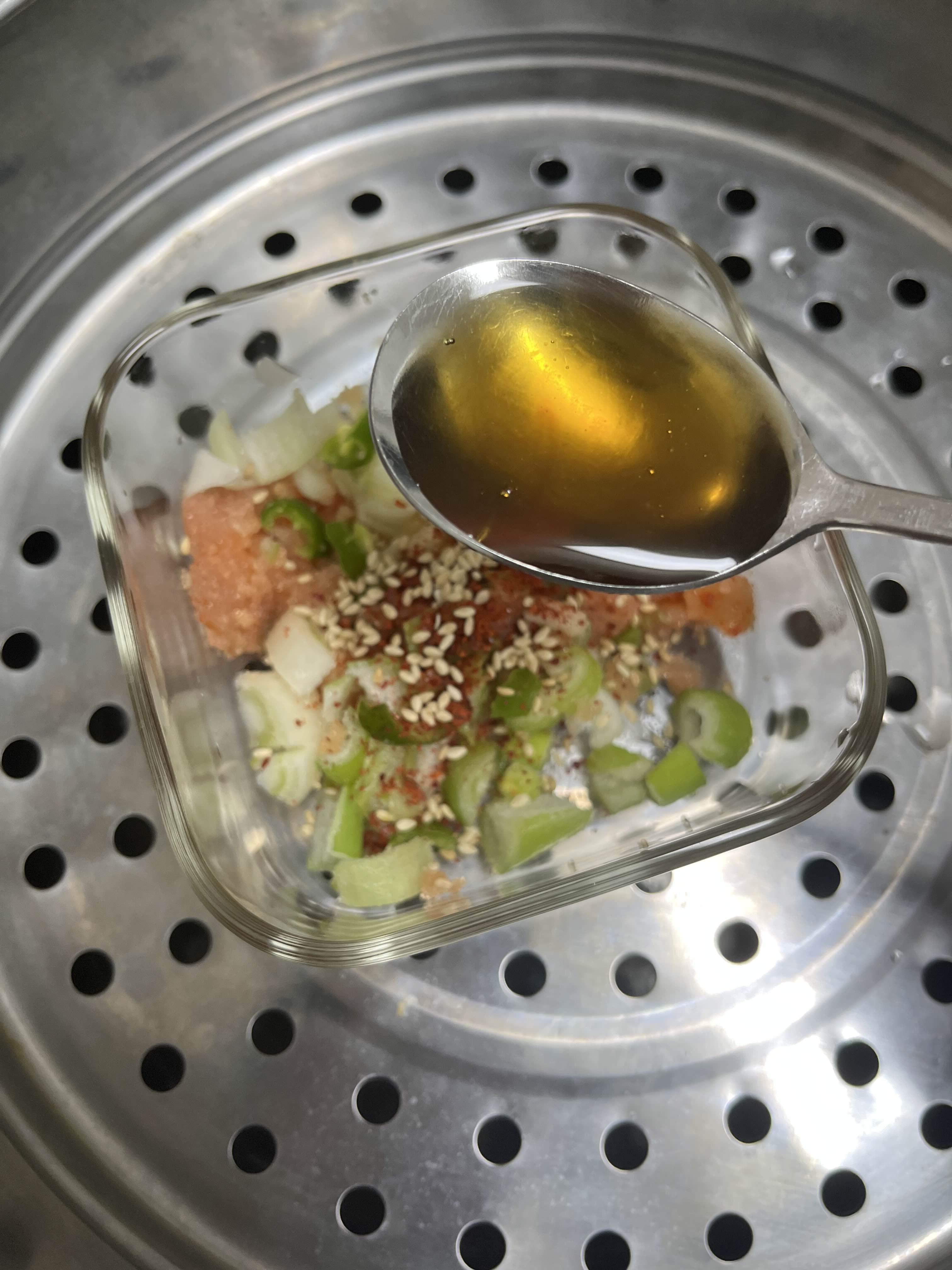 이건 조금 아쉽네요. 다음에 다시 만들 때는 섞은 후 찜기에 쪄야겠어요.