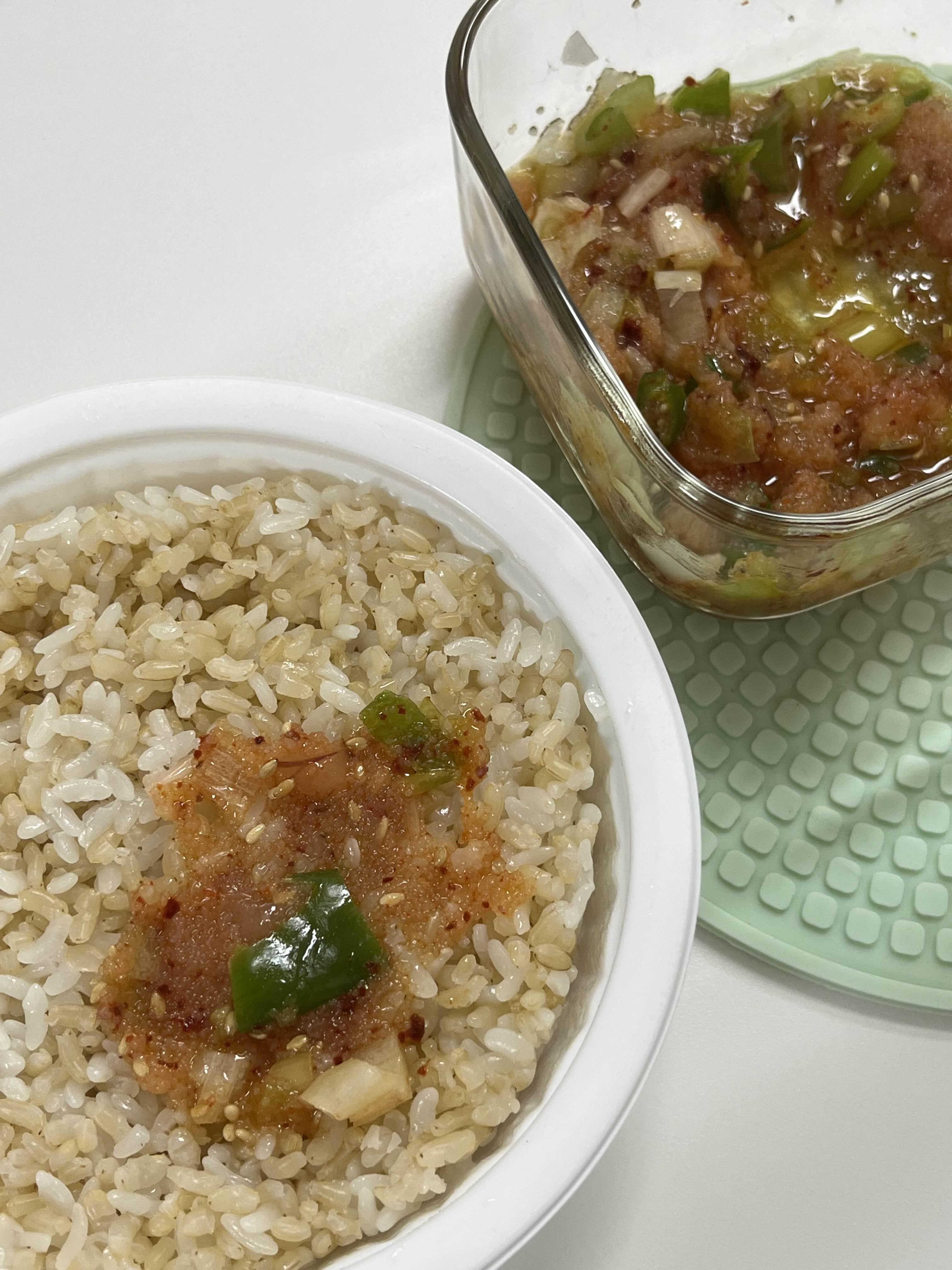 이 레시피의 핵심은 대충인듯합니다. 레시피 기준 명란 2갠데, 저는 평소 식단이 저염에 가까워서 너무 짠건 잘 못먹겠더라구요.