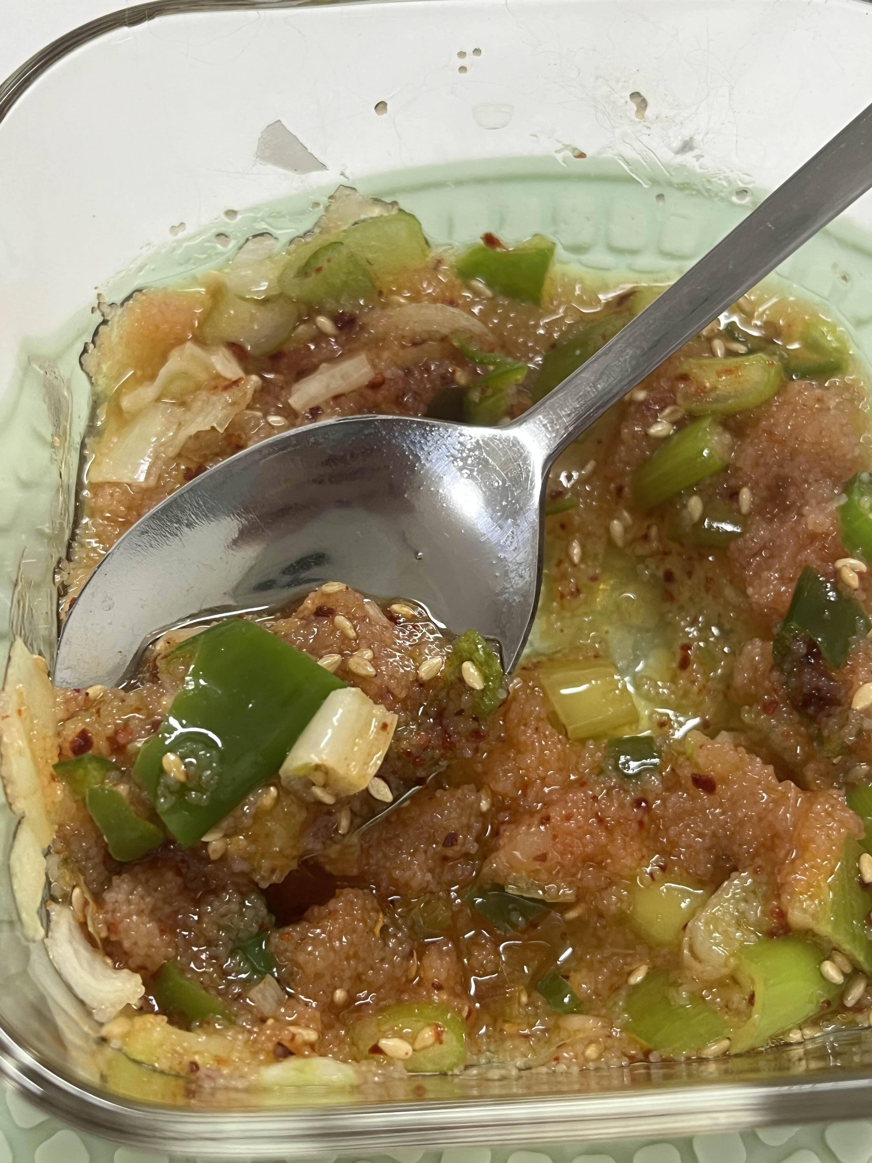 와... 못먹어본 맛 같아요. 정말 참기름 때문에 고소하고 고춧가루때문에 살짝 매콤한 맛도 나고,
